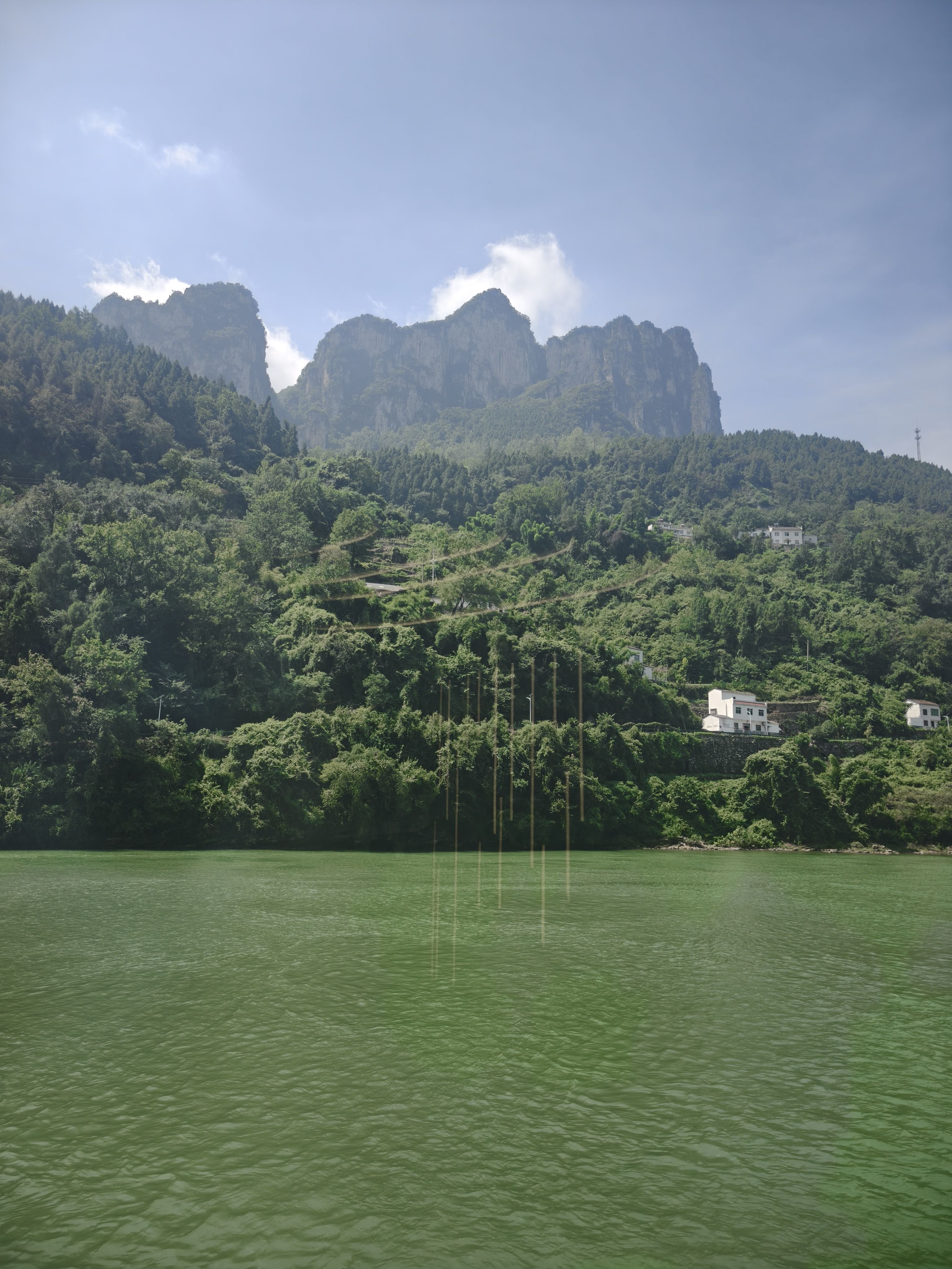 第二个精彩的阶段,是正式进入西陵峡,两岸青山相对出,长江江水绿如蓝,处处皆美景。
