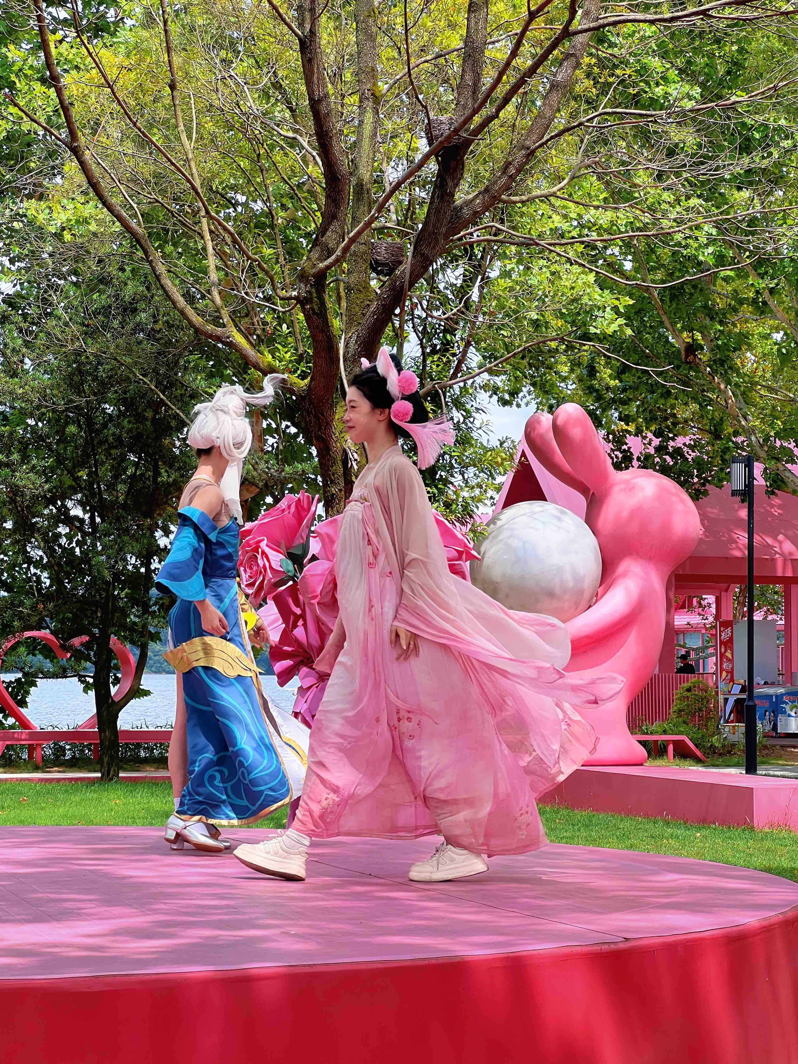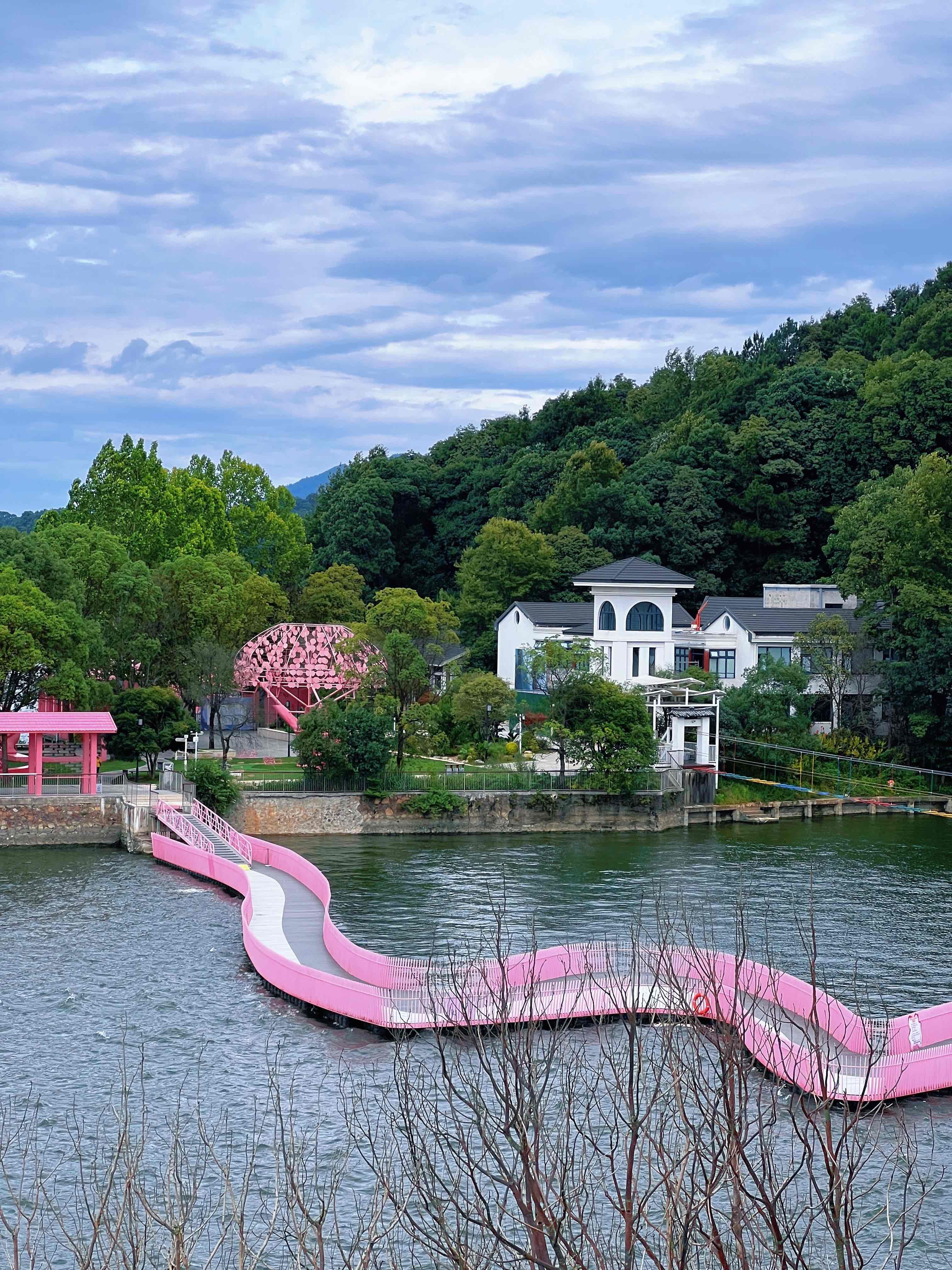 喜欢拍照的一定要去爱情岛,不仅有礼堂和旋转木马,还有沿途的粉色水浮桥也是一大特色,粉色房子真的很少女~