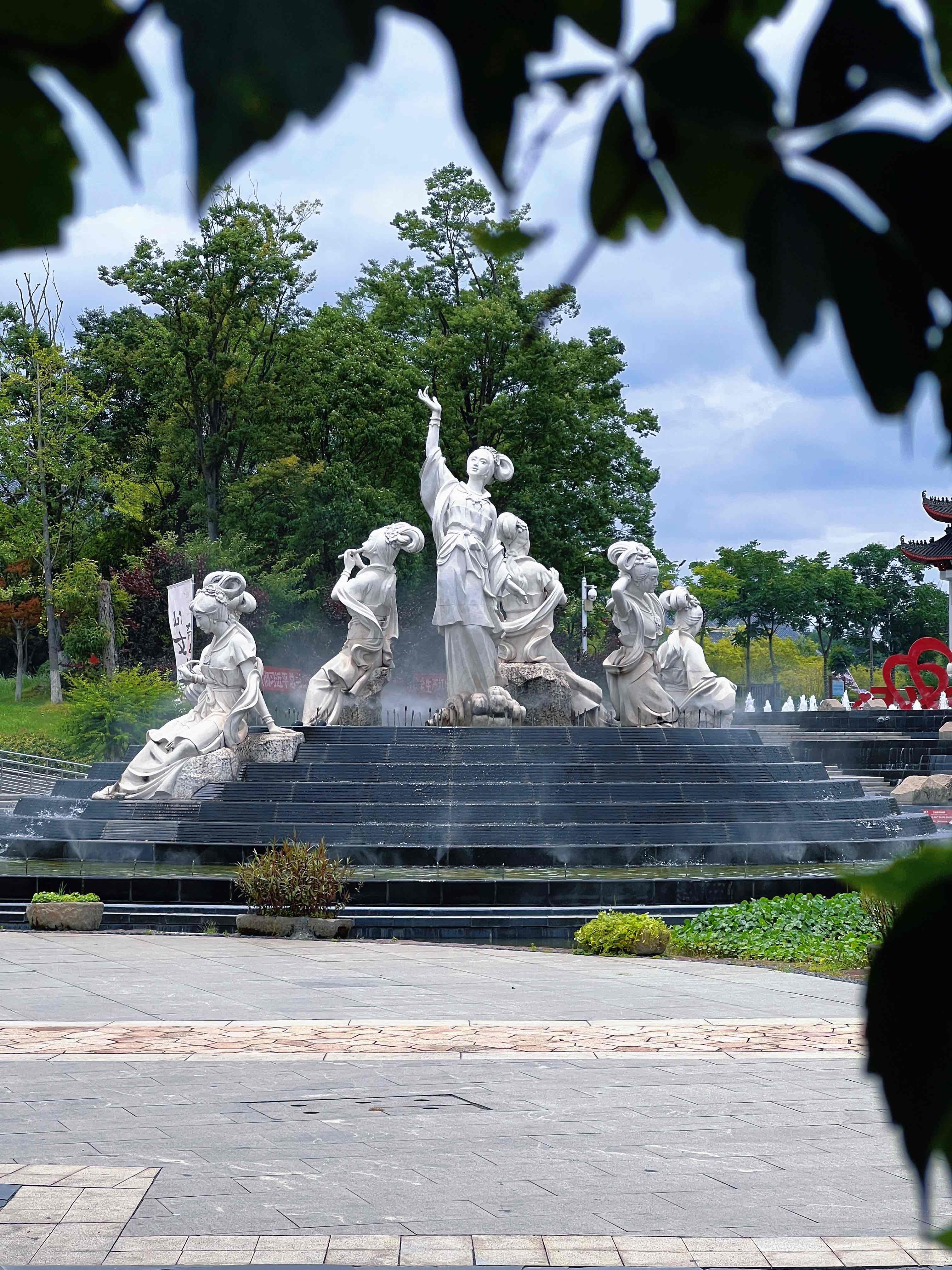 仙女湖的由来也是一个传说,从大门进入游客中心区域就有一个水台,水台中央就是传说中的七仙女;再往前走是非常具有年代感的仿古建筑,荷花池中立,颇有一番江西特色的景观。