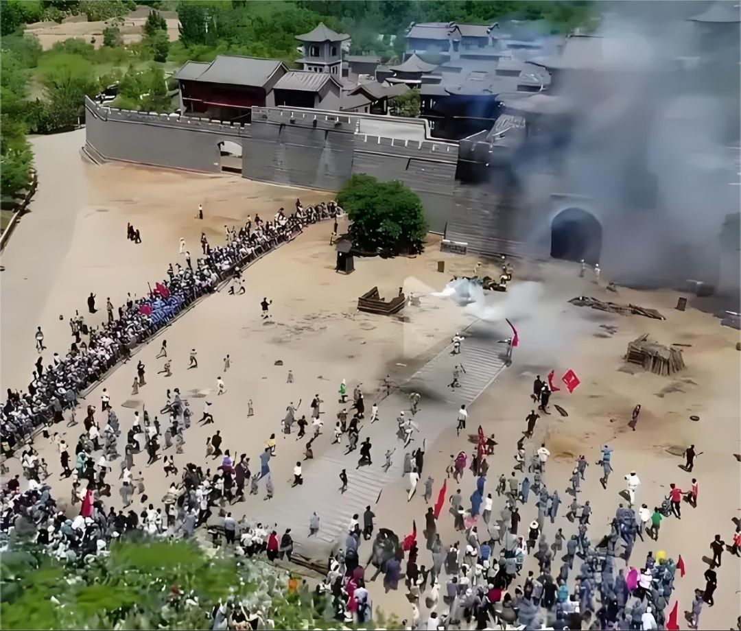 冲锋号响起,上千游客手持道具枪、大刀,朝着“县城”冲锋而去,有人边跑边高呼:“这回‘打鬼子’的体验感直接拉满!”