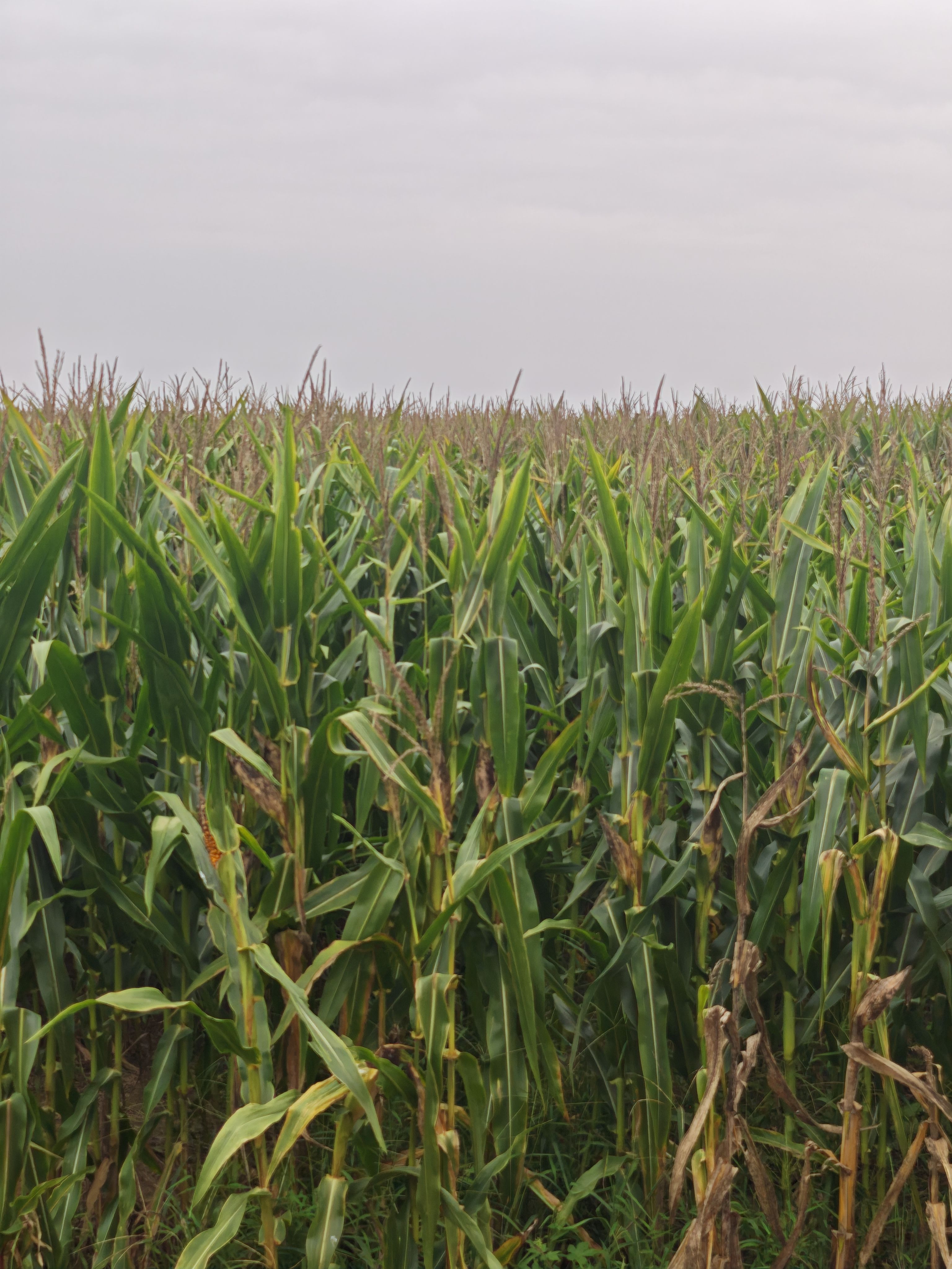 这些农耕户各分包300亩、600和1000亩不等地块,种花生,玉米,红薯等作物,秋作物收了种小麦,一年两熟耕作模式。现正值中秋时节,即将成熟的玉米花生绿油油,一眼望不到边,玉米硕大的棒子斜插秆上,花生果藏于地下,如连棵拔出,数十个荚果缠绕于主根与须根。
