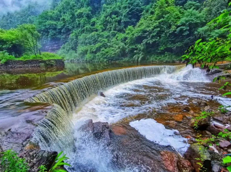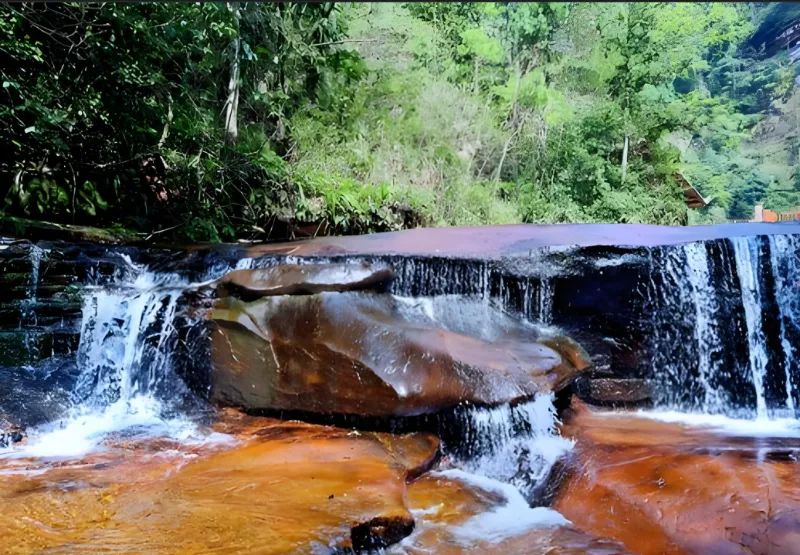 景区里的溪水简直是天然空调!沿着步道漫步,脚下是清澈见底的溪流,两旁是红色丹霞岩壁和茂密植被,走多久都不会热~ 小朋友可以在浅滩踩水、抓小鱼,大人坐在石头上泡泡脚,感受溪水带来的清凉 沿途还有瀑布、深潭,水声潺潺超治愈,随手一拍都是森系大片