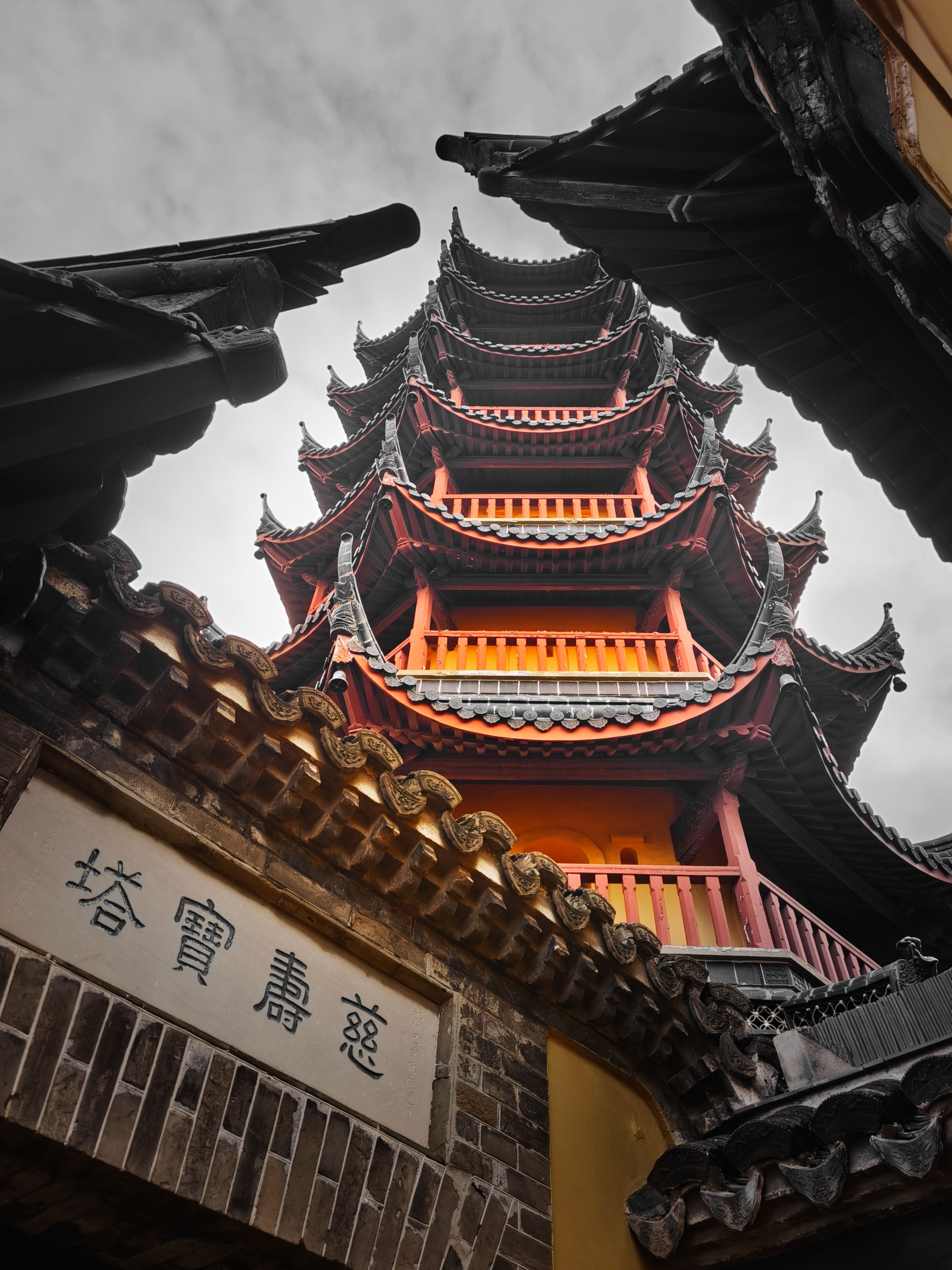 [送自己一朵花]慈寿塔:位于金山之巅,是砖身木檐结构,八角七层高约30米,登塔可俯瞰长江与镇江全景。