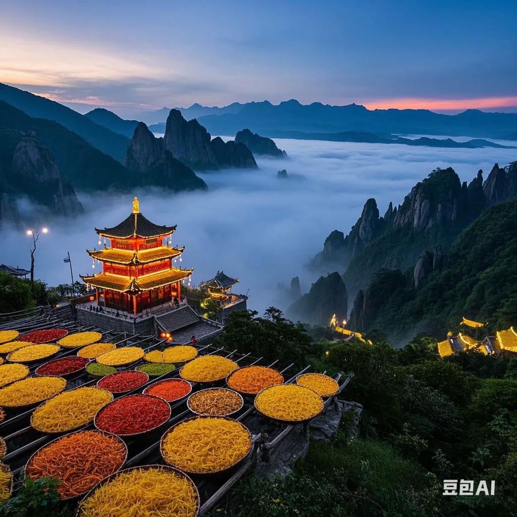 推荐理由: 这里简直是一幅没有滤镜的天然油画!百栋徽派古民居错落有致地悬挂在600米的山崖之上,红的辣椒、黄的玉米、橙的南瓜,满满当当地铺在晒盘里,浓烈的色彩碰撞,让烟火气与艺术感完美融合。夜幕降临,提一盏灯笼,漫步在古巷中,光影摇曳,仿佛穿越进了《千与千寻》的奇妙世界。