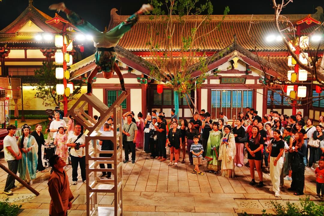 此次采风以 “新闻 + 艺术” 为载体,覆盖 “夜间 + 日间”“城市 + 乡村 + 产业” 场景。9 月 12 日傍晚,乐陵影视城,仿古建筑灯光璀璨,文化演艺片段被定格,凸显影视文旅特色;随后的拾光街区的复古招牌与市民烟火气入镜,尽显怀旧文化与夜间经济融合之美。