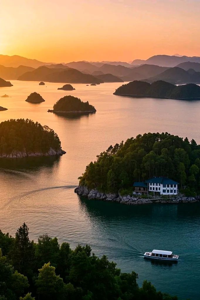 浙江千岛湖:千岛湖湖水清澈,岛屿众多,星罗棋布。在这里,你可以乘船游览各个岛屿,欣赏湖光山色。有的岛屿上有茂密的森林,绿树成荫;有的岛屿上有特色的建筑,别具风情。无论是在船上感受微风拂面,还是登上岛屿漫步,都能让人心情舒畅。傍晚时分,看着夕阳的余晖洒在湖面上,金色的波光粼粼,更是美不胜收。