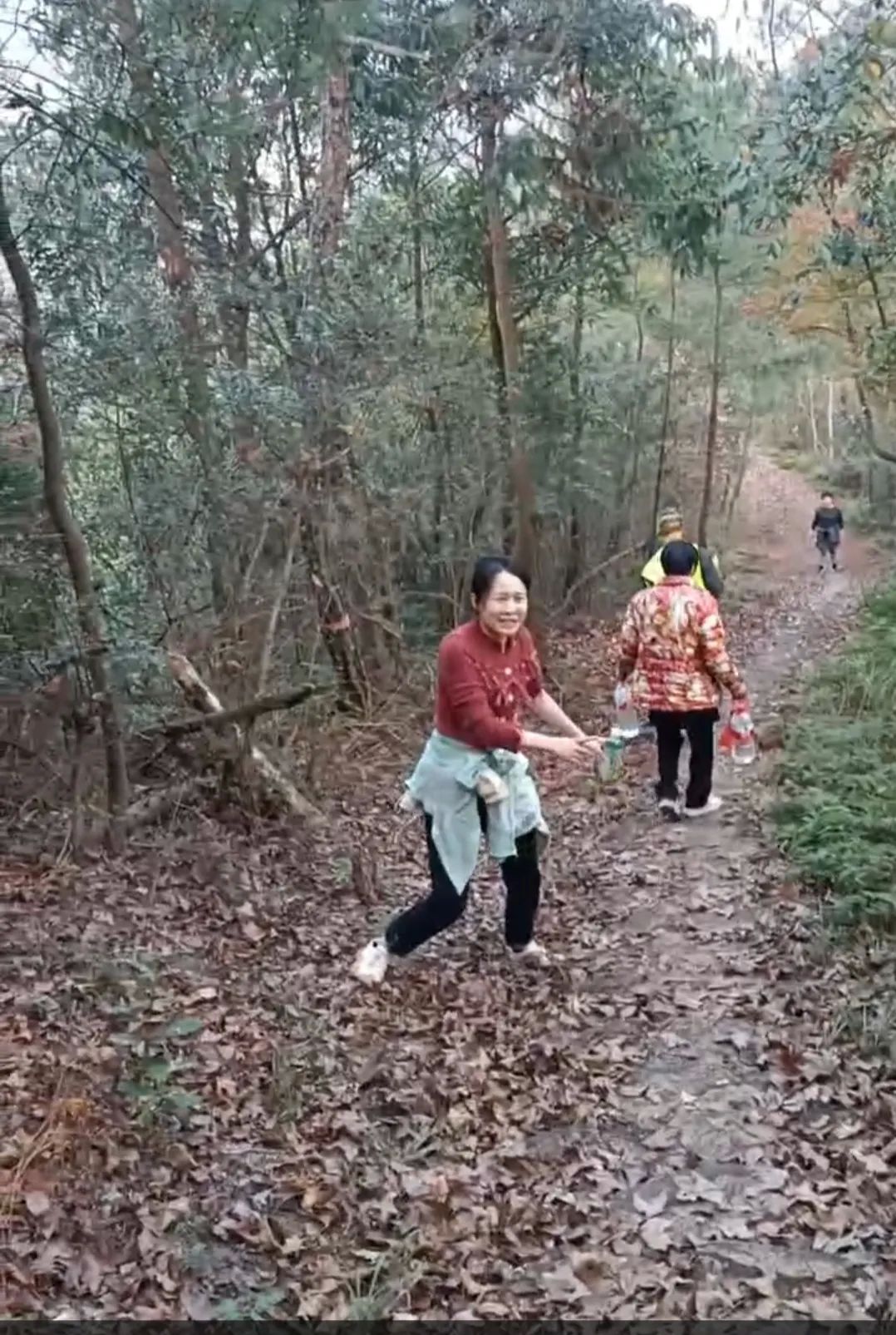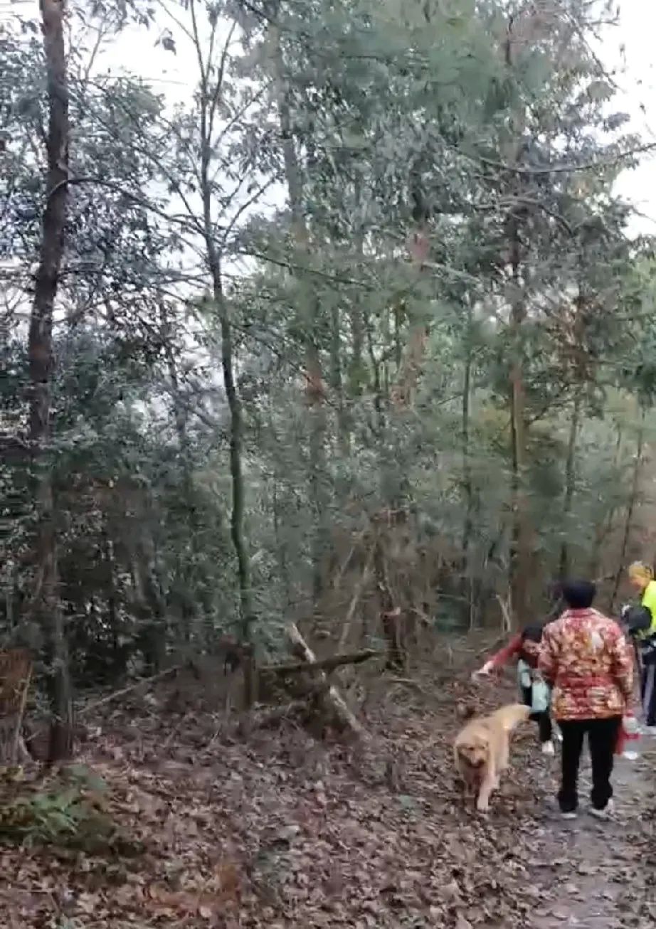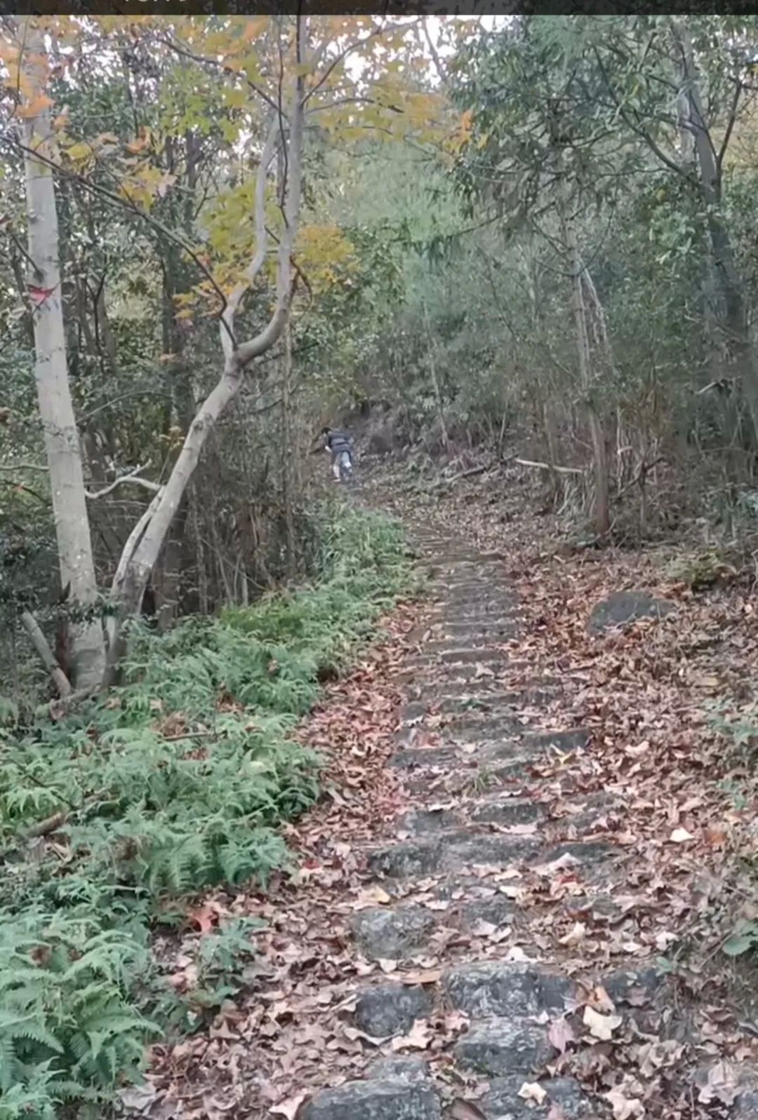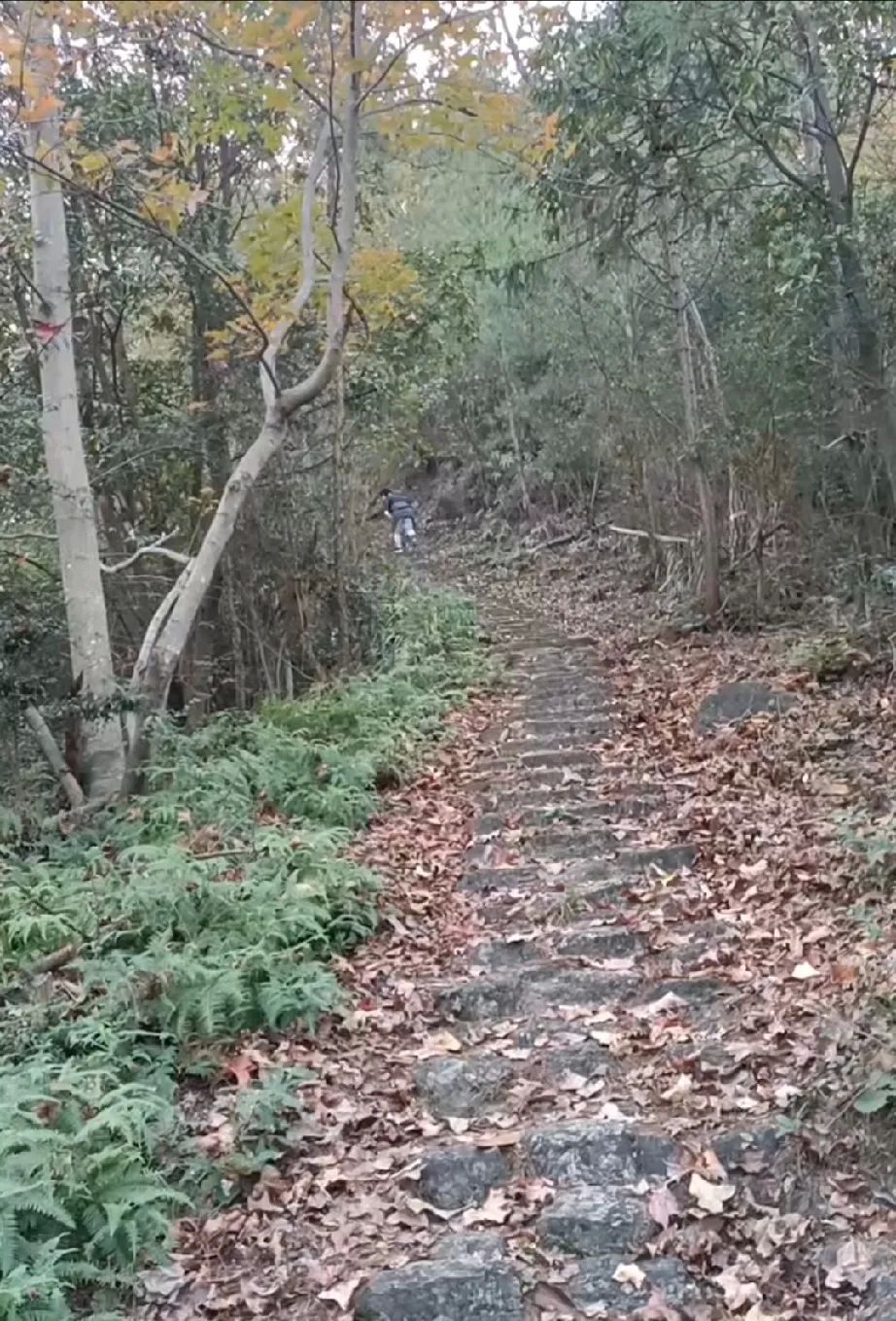 在这初冬季节,气温尚有17、8度,加上天气晴朗,山里空气清新,负氧离子极高,山上的枫叶正红,飘洒满地,甚是好看,是户外登山徒步的最佳时节。我们一行5人,带上她的金毛犬——旺财一起去登里西岩。沿着弯弯曲曲的石头铺成的山道,拾级而上。微风吹过,泛着淡淡清香,虽时值隆冬,然两旁树木依然郁郁葱葱,一派生机勃勃,