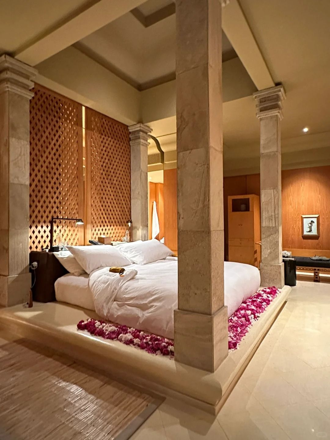 Borobudur 婆罗浮屠套房(243㎡):以古寺为景,室内传统元素与现代舒适感无缝融合;