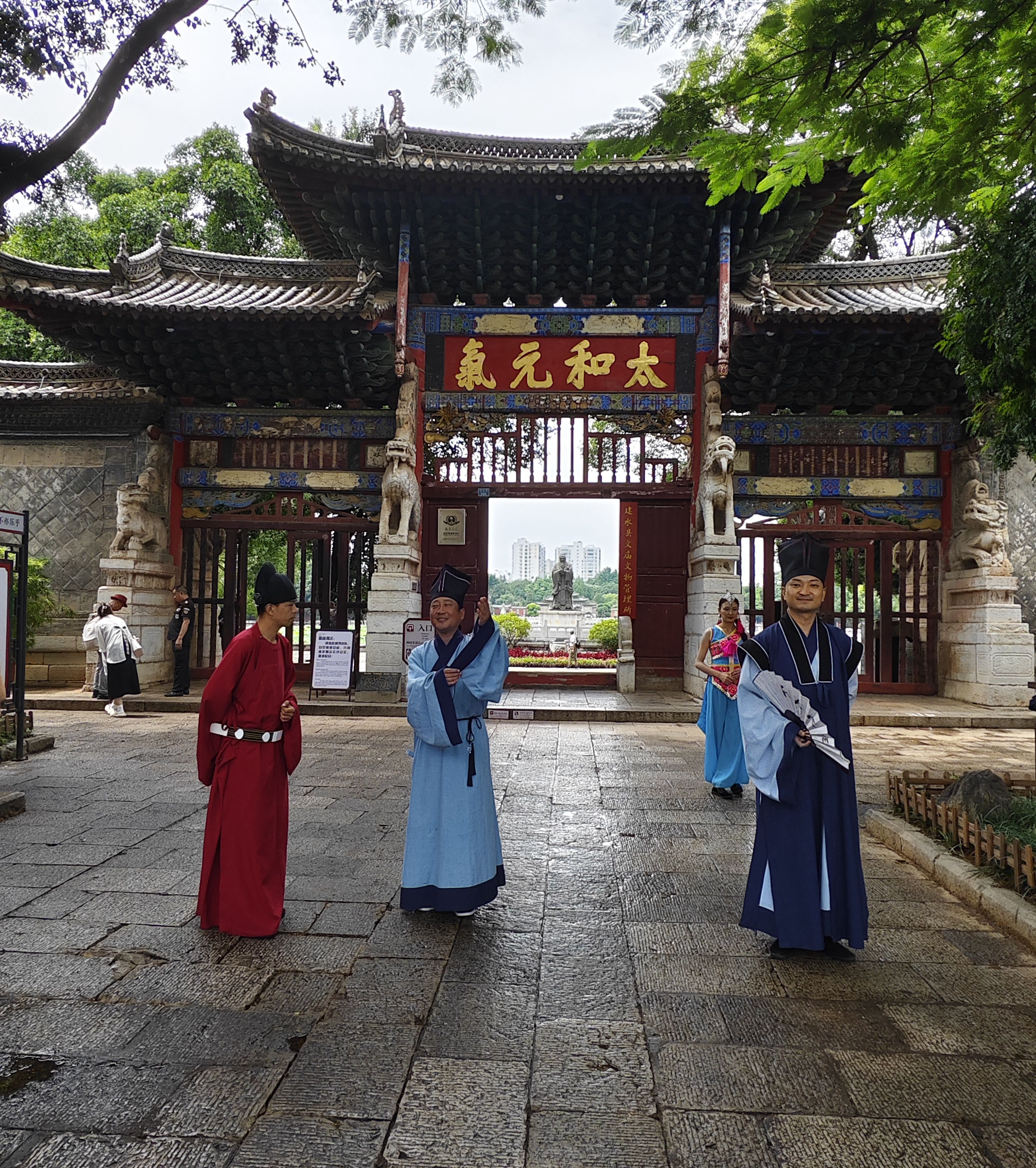 建水文庙是最想去的,全国孔庙列老三,咱老家的犍为文庙是老四,想看看离三哥差距多大。从规模、建筑、底蕴、环境方面,建水文庙很好,具有老大曲阜孔庙的神韵(图八、九、十、十一)。犍为文庙是以特色出众,大而直的金丝楠木柱子,镂空铁石雕刻柱础,飞角三重檐建筑,高大雄伟的大成殿,这些其他文庙难以比肩。