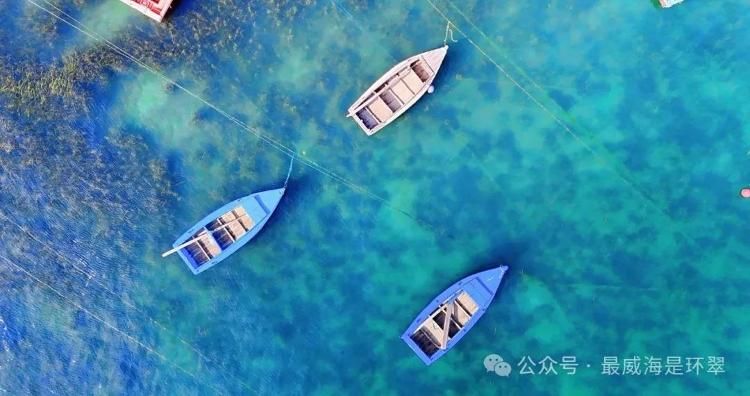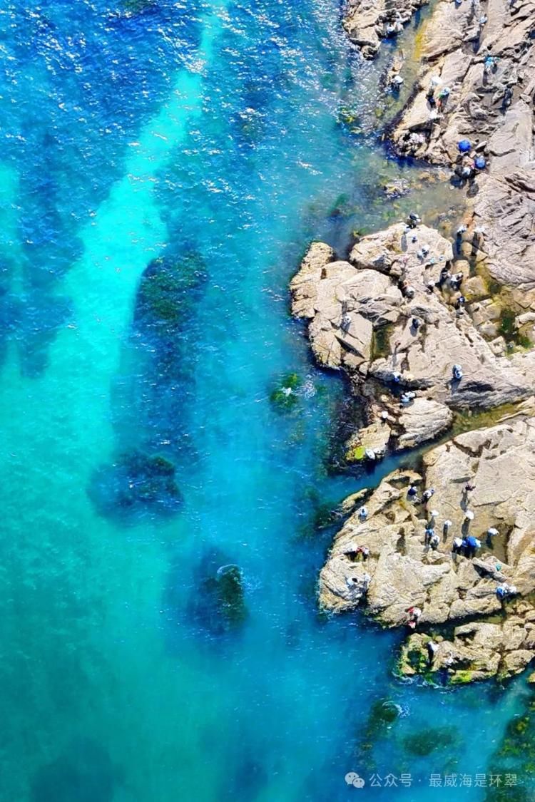 海面清透见底,海水呈现出从薄荷绿到蒂芙尼蓝再到深海钴蓝的渐变层次,阳光穿透时仿佛液态宝石在流动,堪称专属威海的极致色彩美学实验场。