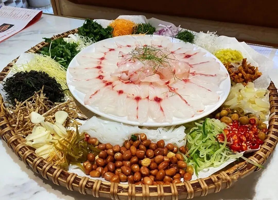 横州鱼生:以刀工精细、鲜爽脆嫩著称,是横州江河饮食文化的精髓。选用郁江野生鲩鱼或花鲢鱼,现杀现切,鱼片薄如蝉翼,搭配柠檬叶、紫苏叶等十余种配料,淋上花生油和生抽,口感层次丰富,是宴席上招待贵客的头牌菜。