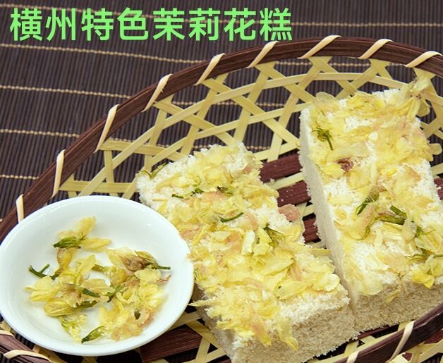 茉莉香糕:横州作为“中国茉莉之乡”,将茉莉花融入美食,茉莉香糕便是代表作之一。用糯米粉、粘米粉混合新鲜茉莉花瓣蒸制而成,口感软糯、花香淡雅,是夏季消暑解腻的佳品。
