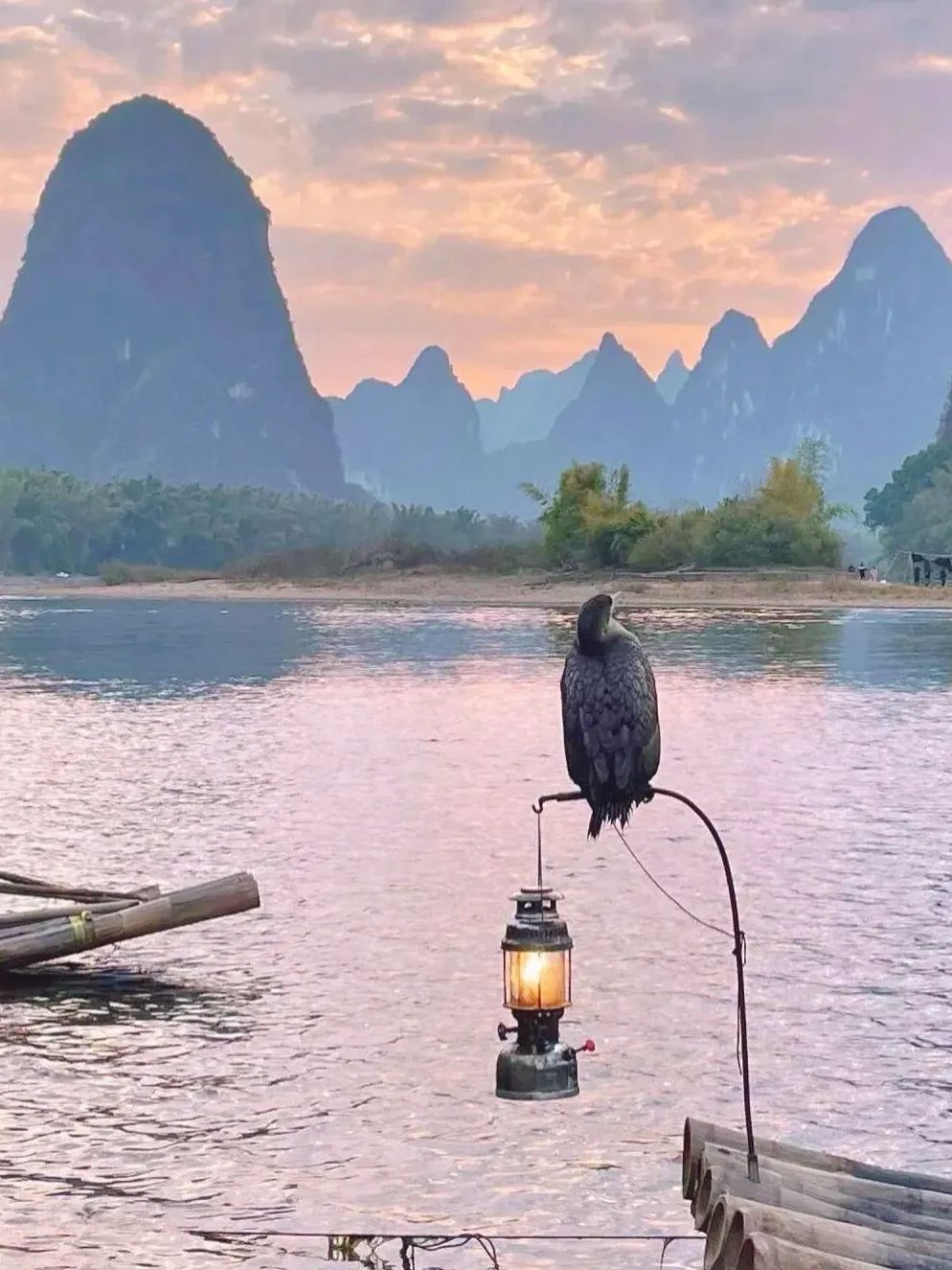 “舟行碧波上,人在画中游”,漓江的精华就在杨堤至兴坪段。清晨乘坐竹筏,看晨雾与渔火相互交织,鸬鹚静静伫立在竹篙上,瞬间定格成绝美的水墨剪影。而且 20 r人民币背景的“黄布倒影”就在这儿,记得带上纸币合拍一张,超有纪念意义~