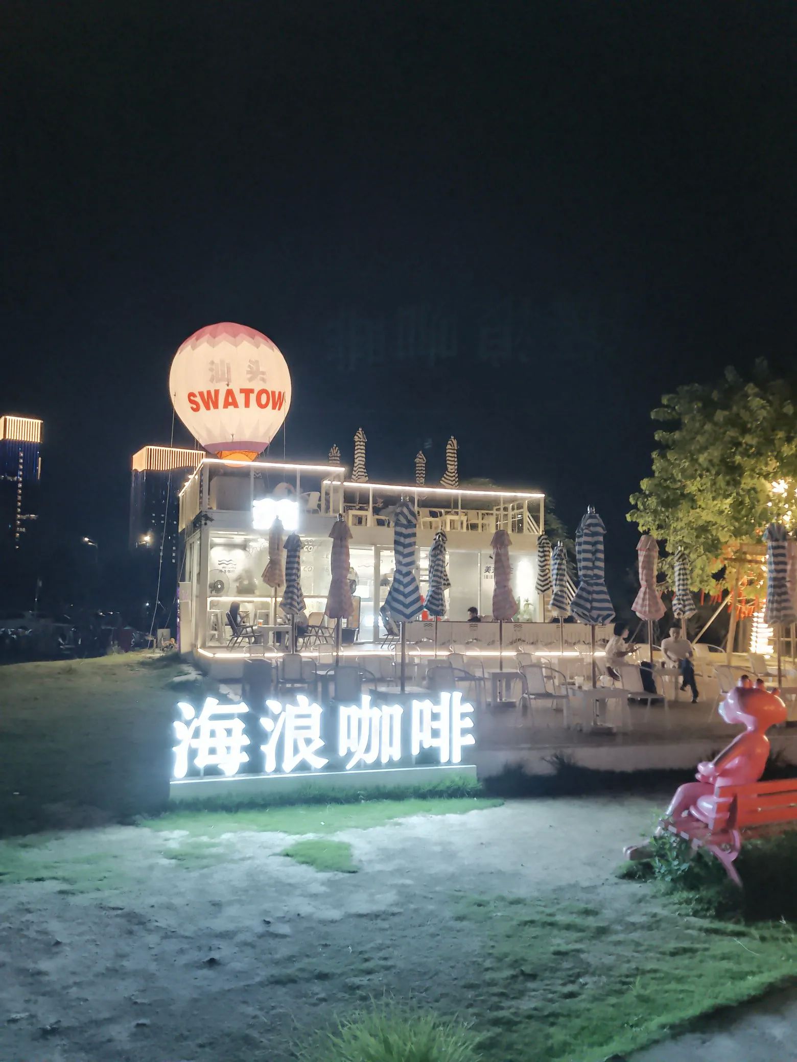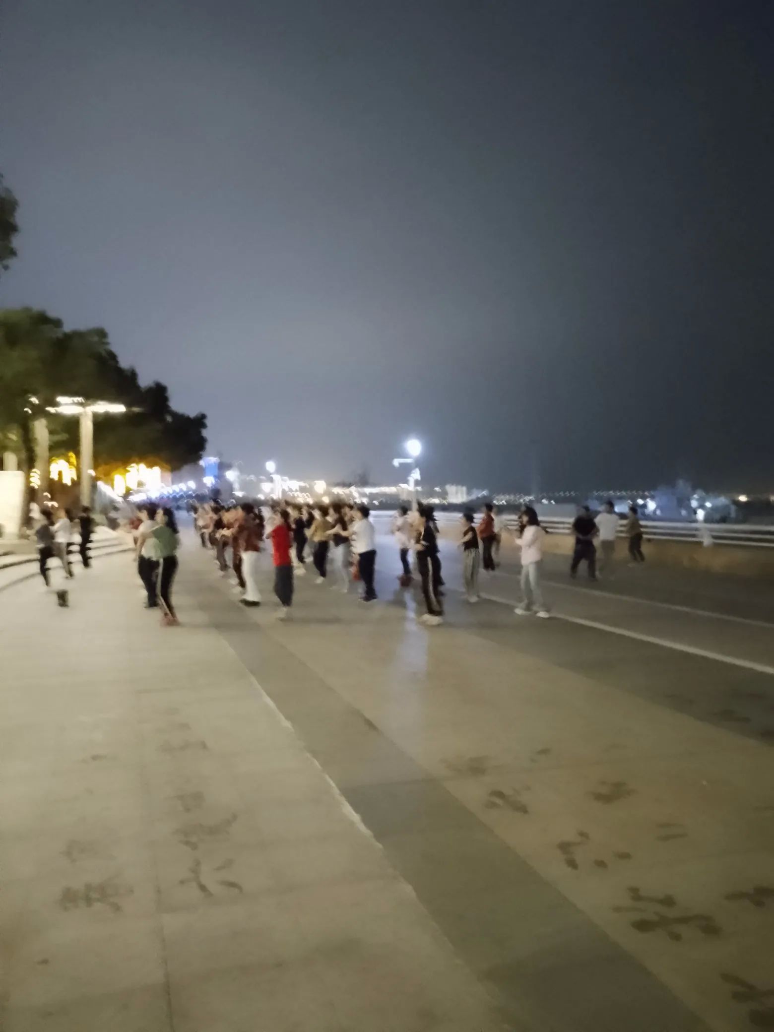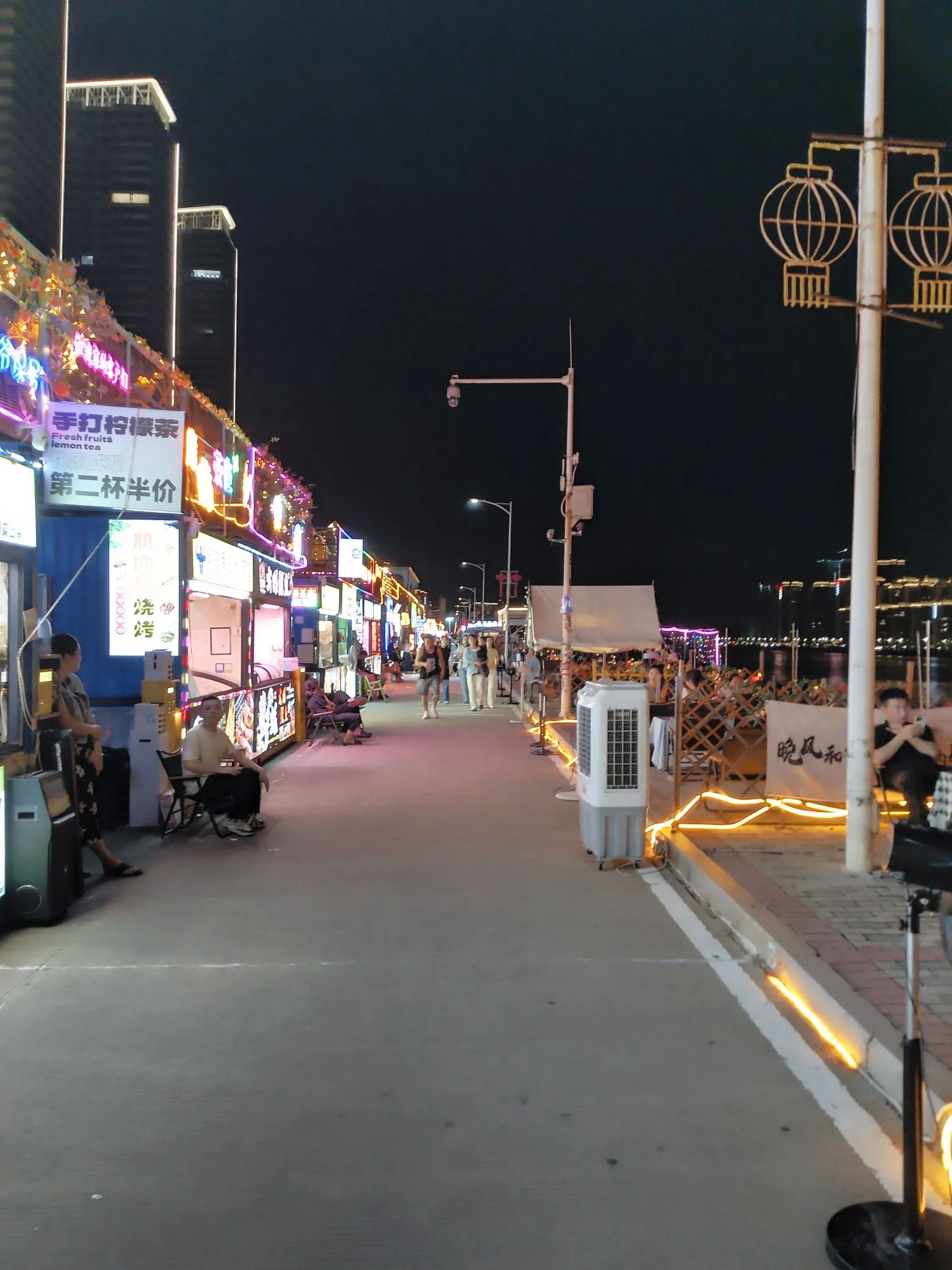华灯初照,汕头礐石海碧波荡漾,灯火辉煌,人们各奔喜欢的地方,休闲快乐。在海滨长廊公园一带,大家都很活跃,跳起舞和唱起歌,健身操,漫步散步的人不计其数,唱歌还有直播间或卡地自唱,丰富了夜生活,有人在岸上眺望远处的夜景,礐石南滨路夜间的灯光翊翊生辉。与此同时,畅游内海湾的旅游船在海面航行,似一颗永不落的明珠在海面游荡,耀眼的灯光绽放五彩缤纷。