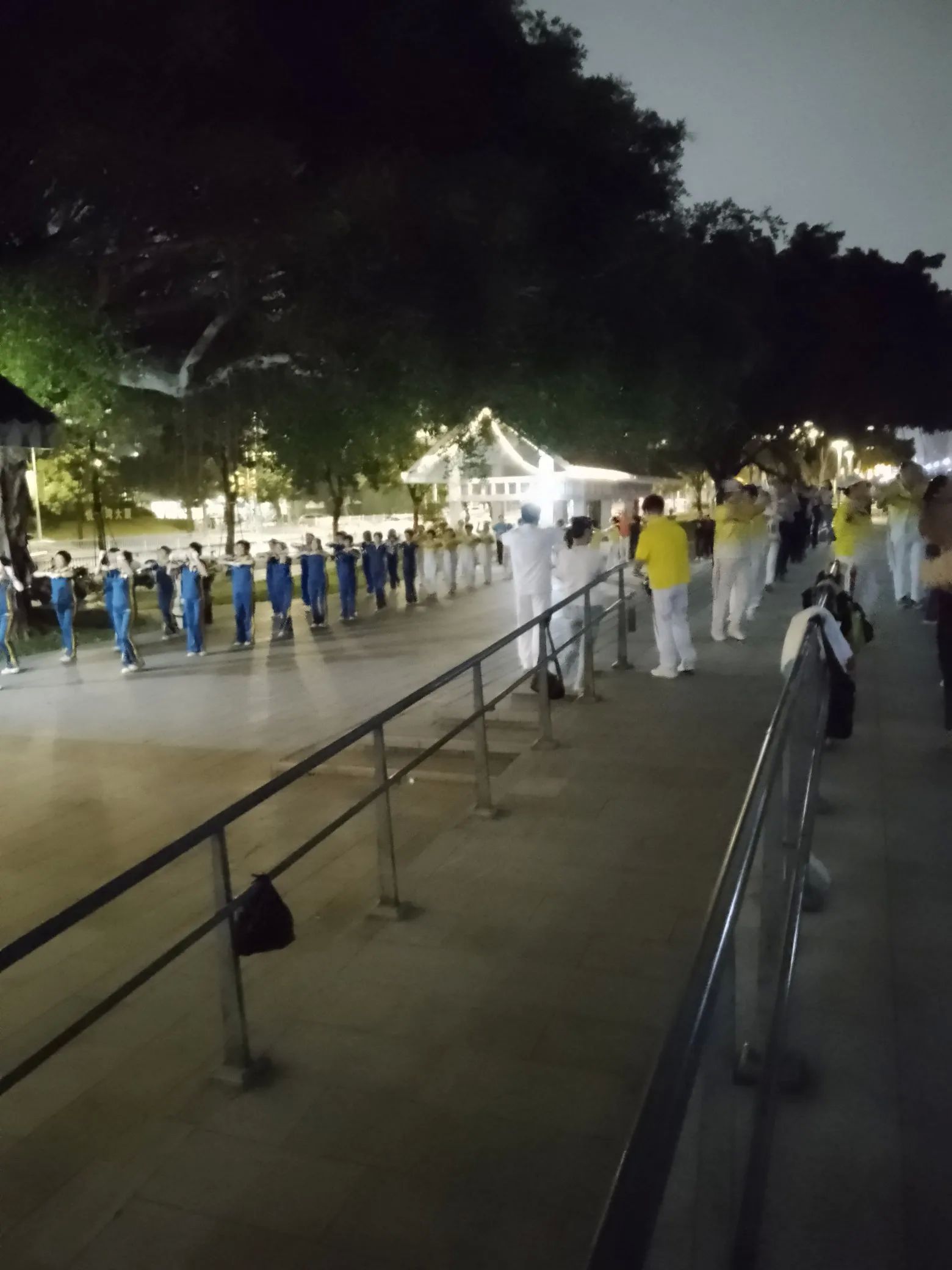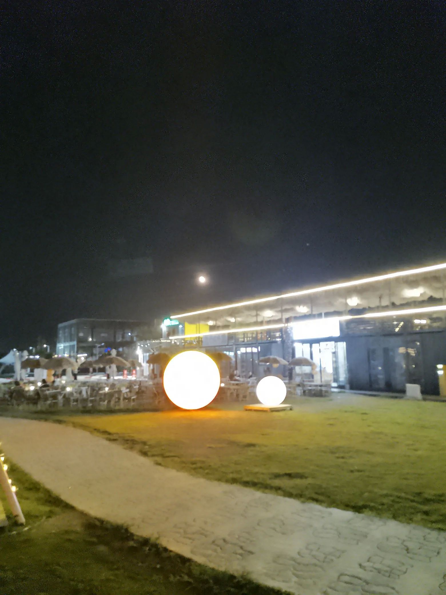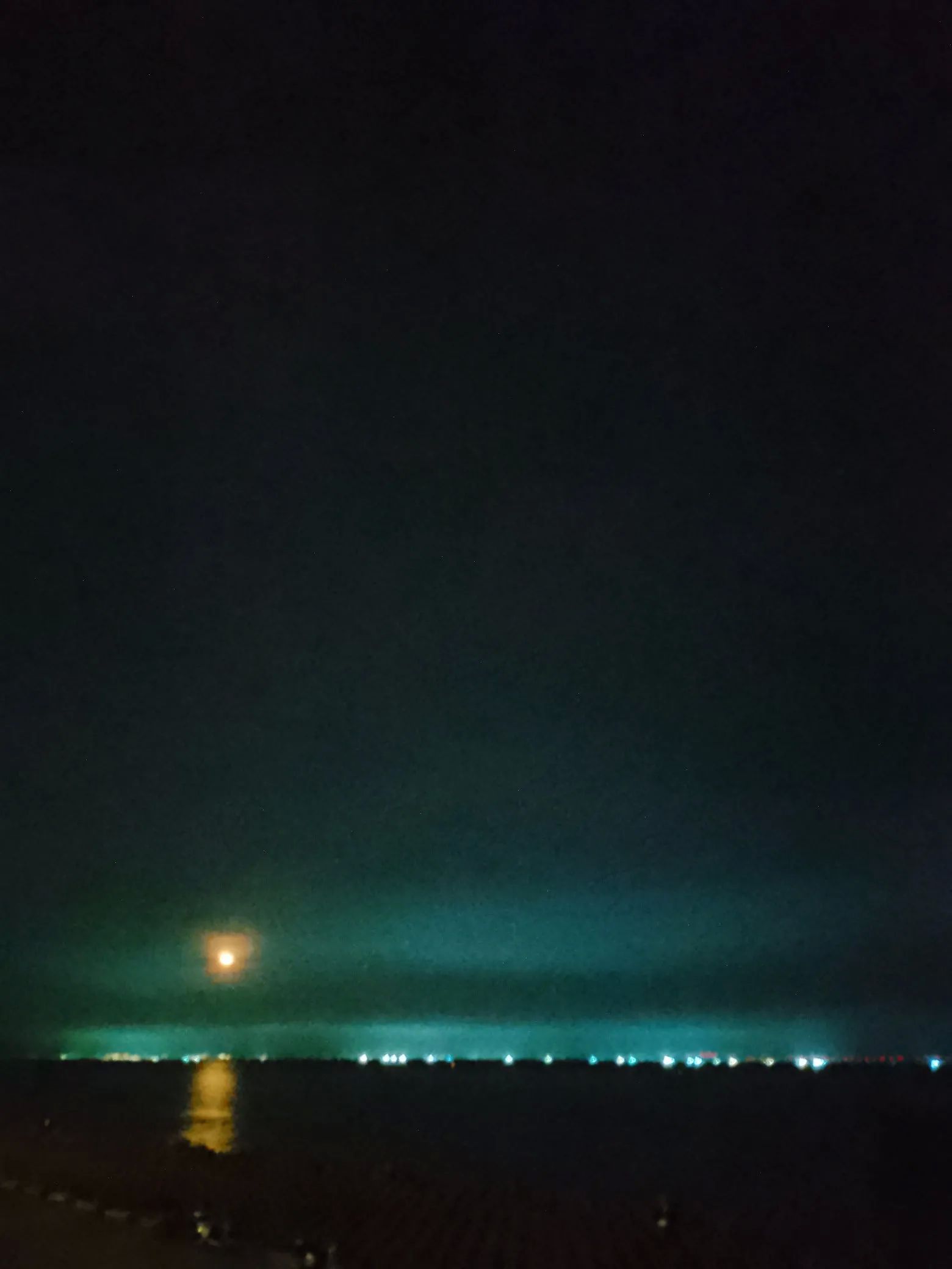 华灯初照,汕头礐石海碧波荡漾,灯火辉煌,人们各奔喜欢的地方,休闲快乐。在海滨长廊公园一带,大家都很活跃,跳起舞和唱起歌,健身操,漫步散步的人不计其数,唱歌还有直播间或卡地自唱,丰富了夜生活,有人在岸上眺望远处的夜景,礐石南滨路夜间的灯光翊翊生辉。与此同时,畅游内海湾的旅游船在海面航行,似一颗永不落的明珠在海面游荡,耀眼的灯光绽放五彩缤纷。