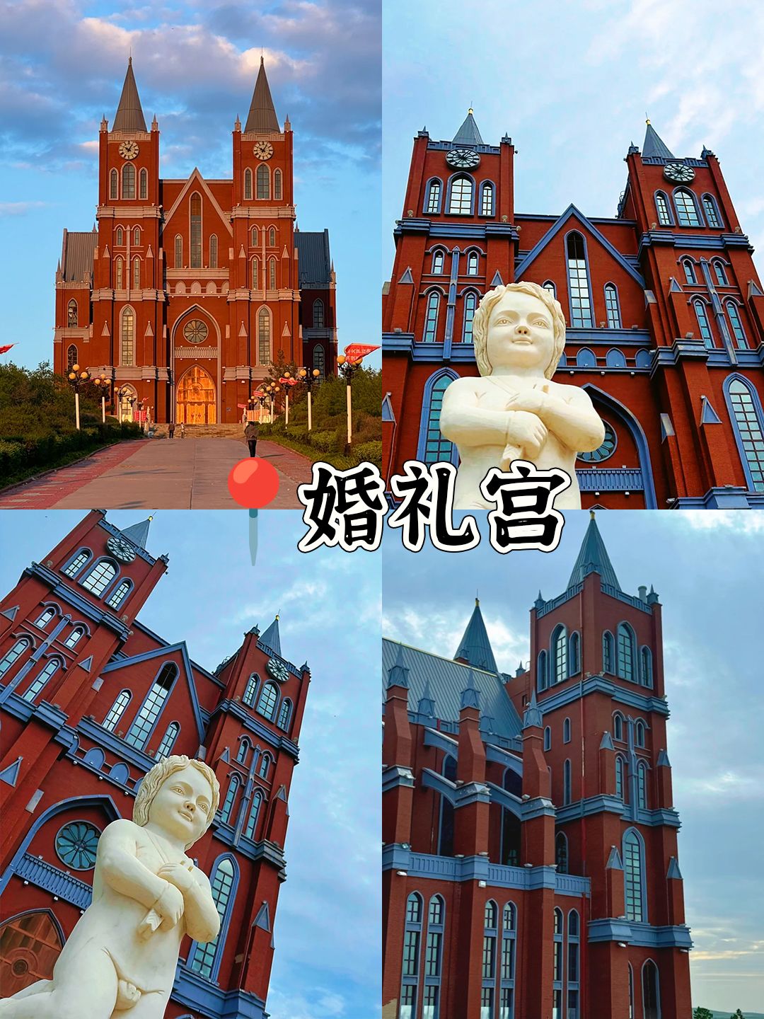 一座位于东山制高点的粉色穹顶教堂,外观浪漫梦幻,沿 99 级台阶走上去,能俯瞰中俄边境线全景。这里是观赏落日的绝佳地点,夕阳把整座城染成琥珀色,美轮美奂。教堂内部不开放,但外部拱门、彩色玻璃窗很适合拍婚纱照风格的剪影。