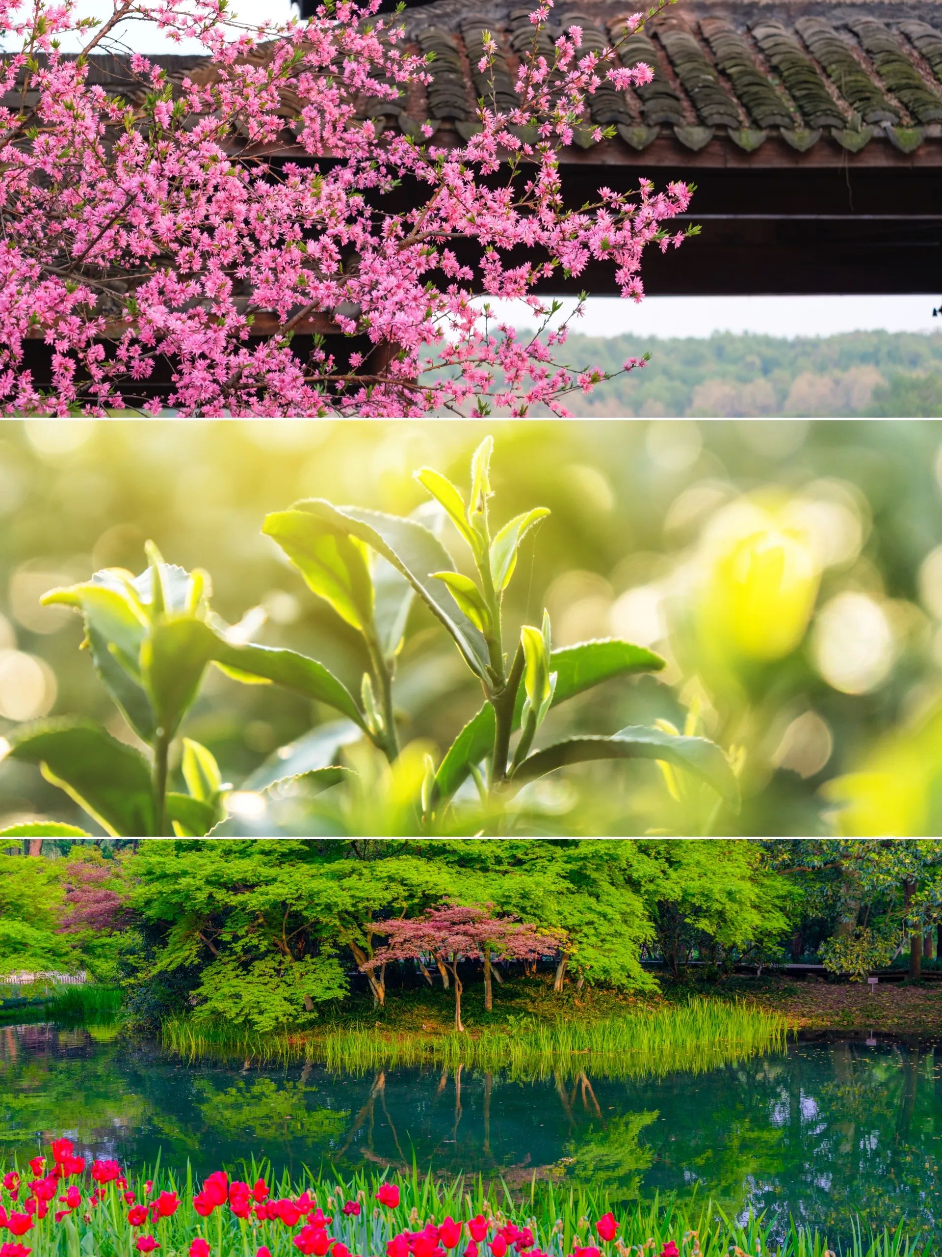 满觉陇杜鹃,龙井茶园总让人流连。清明后,映山红开透,茶园红配绿看起来很鲜灵。当漫山杜鹃如火如荼,炒青的香气里都带着花蜜甜。那场景正如《茶经》里说的“嘉木与芳华共生”,可不就是眼前这般?