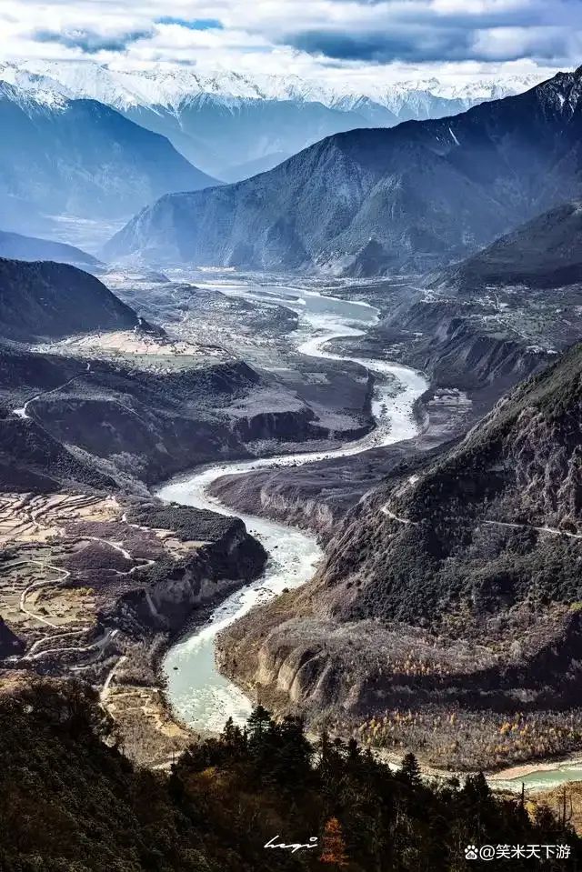 世界最深峡谷,南迦巴瓦峰的雪顶与奔腾江水形成极致视觉冲击,徒步爱好者天堂。