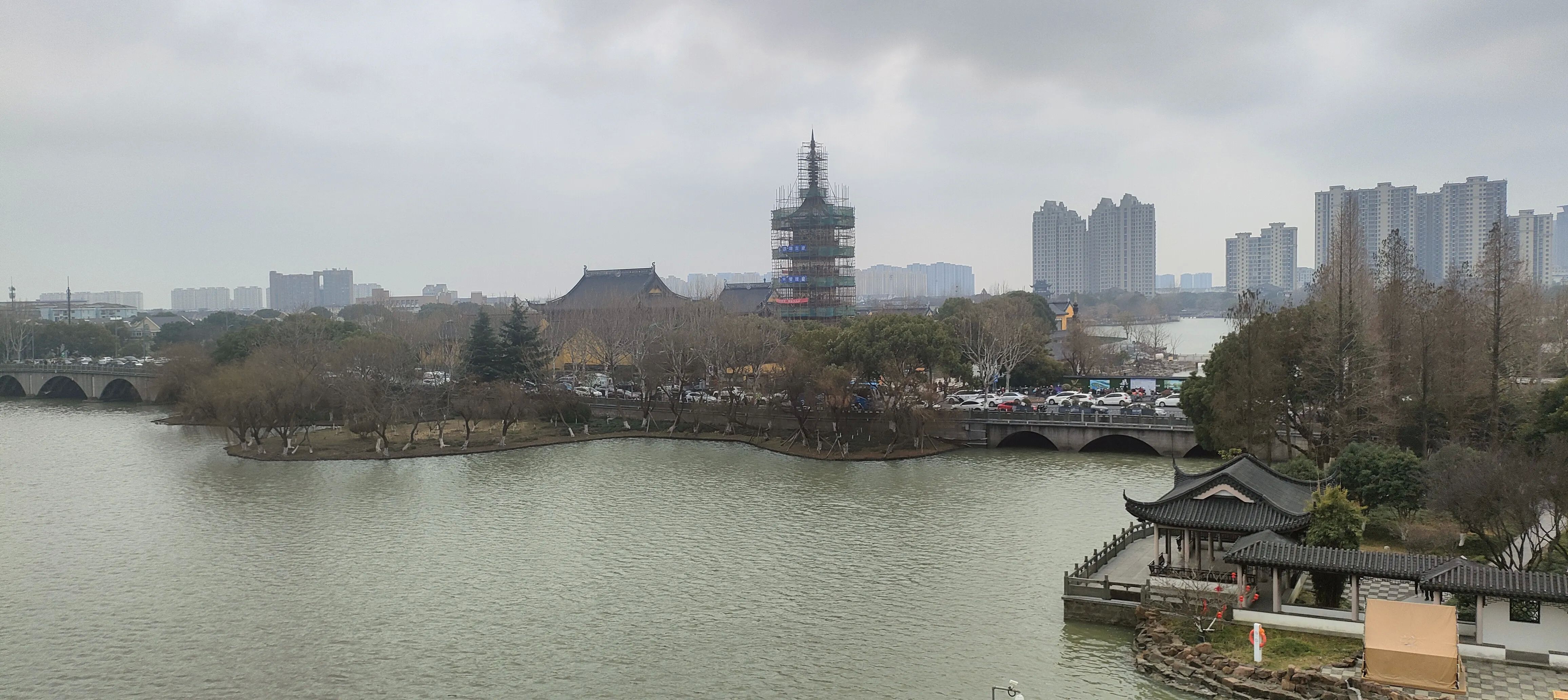 正值春节之际,我们先来到南村书堆景区,只见牌楼边布置得非常喜庆,许多游客停止脚步,在这里选择合适的角度拍摄自已的镜头,我们匆匆一顾之后,往牌楼的东边前进,来到了平湖的《九峰一揽楼》,它的正门朝向西边,正好已经开着。