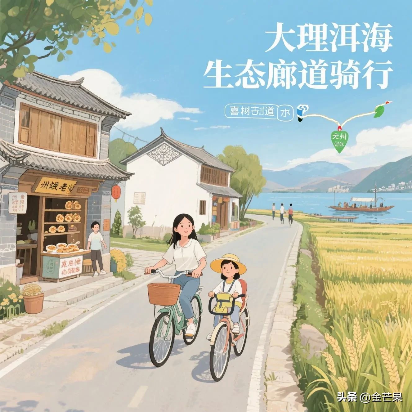 · 经典路线:才村码头 喜洲古镇(约15公里),全程平坦无坡,婴儿车也能推!沿途有稻田、白族民居,喜洲粑粑老店现烤玫瑰味酥到掉渣。