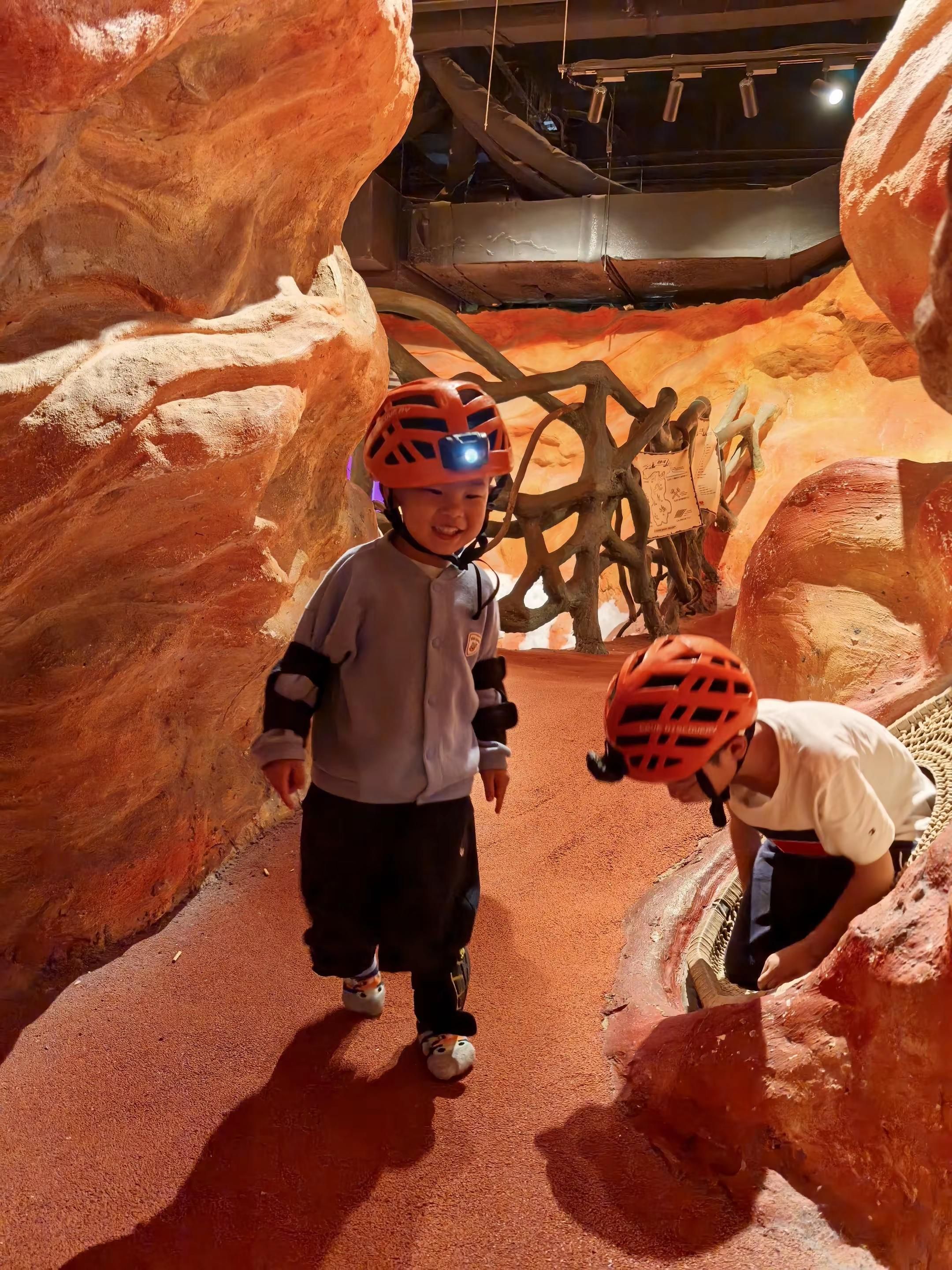 成都室内探秘 | 探洞工场太好玩啦。家有精力旺盛的小朋友,操心带他去哪消耗精力?听我的,地铁直达!就来环球中心探洞工场。既能带小朋友解锁探险乐趣,又能消耗小朋友的电量,一举两得!店铺:探洞工场(环球中心旗舰店)地址:天府大道北段1700号环球中心D区1楼外围1800㎡的超大空间,不同主题的洞线,三大分区(迷宫区、科普区、挑战区)一条竞技线,更有360°摄像头监控,小朋友在这里可以自由探索,解谜寻宝。入园会有工作人员帮忙戴装备,超有耐心的,小朋友乖乖坐着穿好装备就可以准备探险啦!一进门就开始各种哇撒(〃''〃),喀斯特岩石洞、冰川冰雪洞、火山熔岩洞、七彩洞穴,每个场景都特别真实。不同洞穴有不同任务,可以根据自己的情况(年龄段、爱好)来选择领取,完成通关后还有奖励哦。好玩又有趣,玩下来时间过得超快的。简单的探洞冒险,就锻炼了小朋友的体力、脑力和耐力,我陪着孩子大概玩了一个半小时,超开心的,下次还要再来二刷!Tips:入园需穿防滑袜,可自备也可以现场购买。4-6岁娃建议家长陪同!窄洞和陡坡还有黑黑的环境对小朋友来说有点挑战,需要大人陪同。尽量穿长袖长裤,爬行时间多,长袖长裤能更好的保护自己。女孩子不要穿裙子哦。#成都亲子游 #国庆成都必打卡探洞主题乐园 #成都乐园 #周末遛娃 #带娃好去处