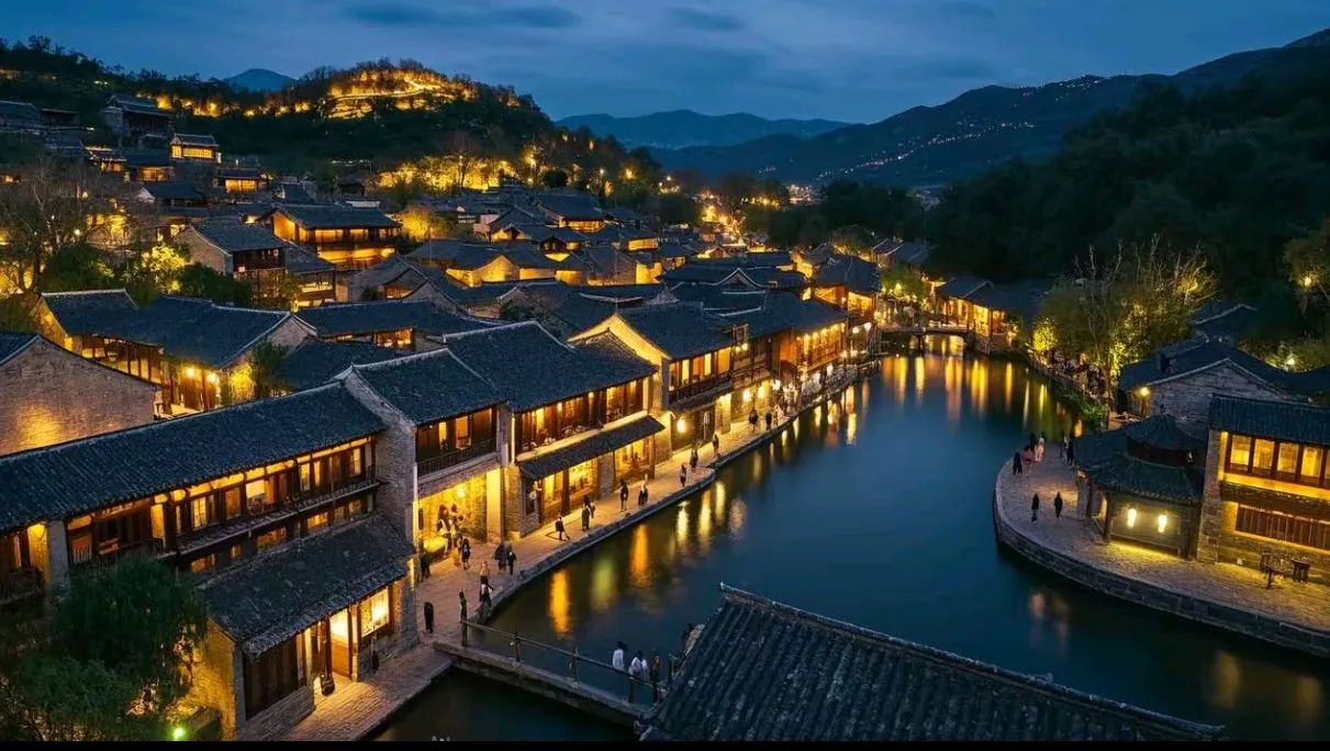 - **车程**:1.5h | **玩法**:水镇摇橹船、夜游长城、温泉民宿