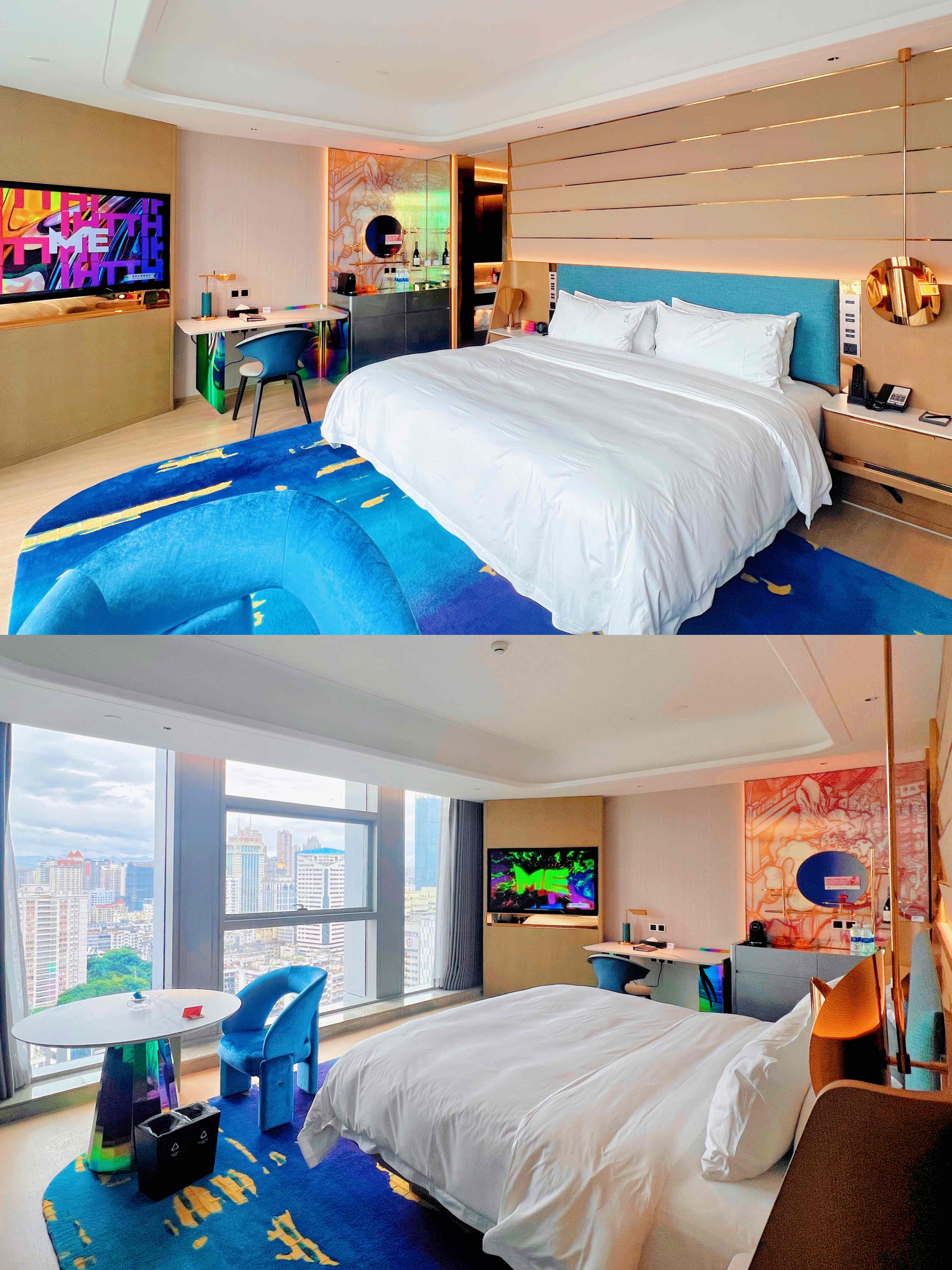 非常明亮!!毕竟是一整片落地窗啊,一张大床正对着老福州天际线。宽敞且时尚潮流,真的是坐下就不想动了,太舒服啦!