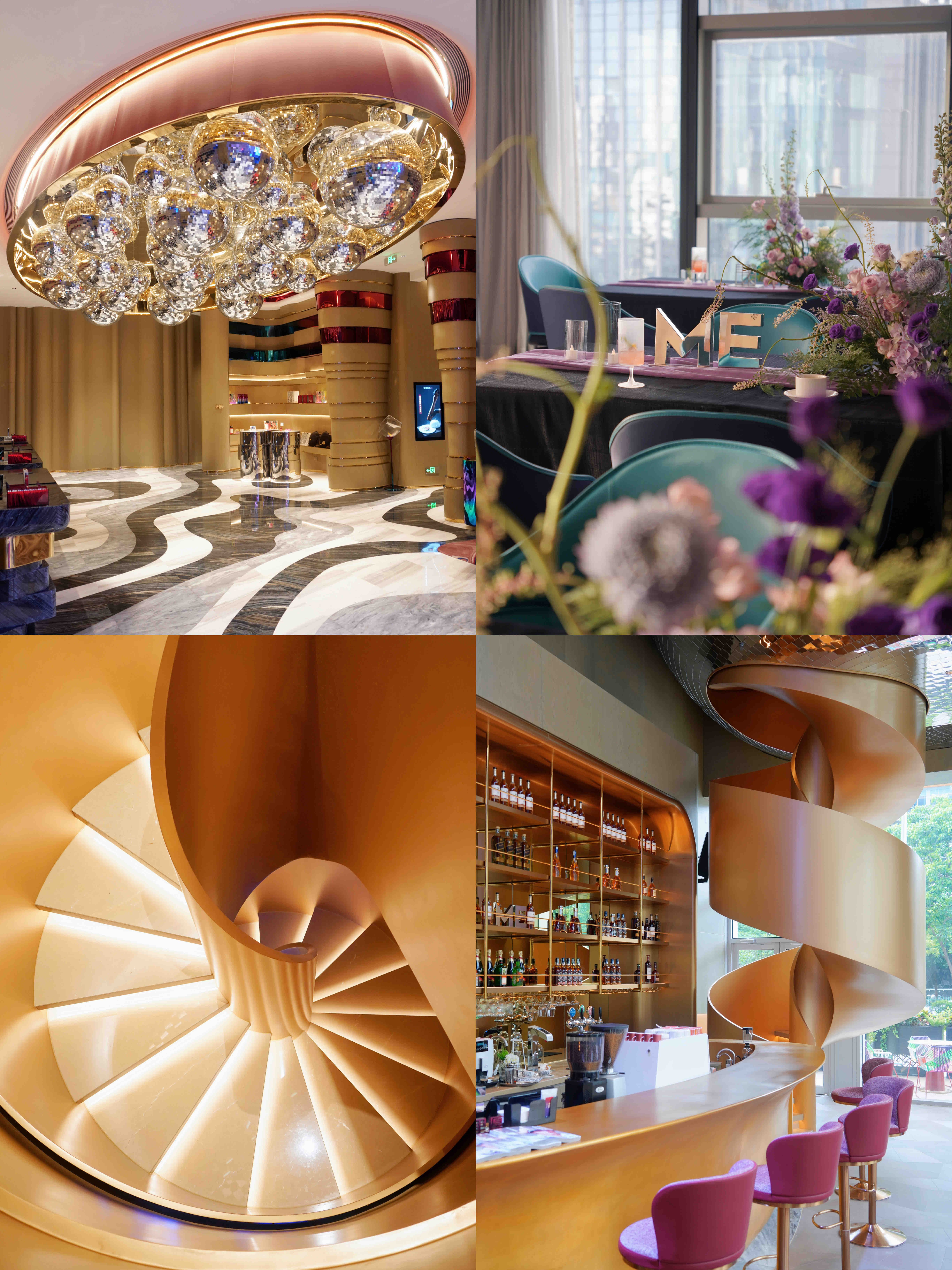旋转楼梯、窗边、蜜豆雕像旁,五楼的走廊(新娘化妆间),25楼的空中美术馆,酒店真的很好拍!!