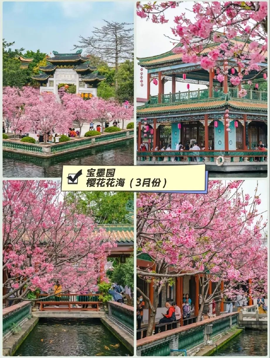 宝墨园里樱花与岭南古建筑美妙融合,在汉唐风韵中点缀着粉白相间的花雨。园内还能够投喂锦鲤、观赏园林,门票54元,适合全家一同出游。