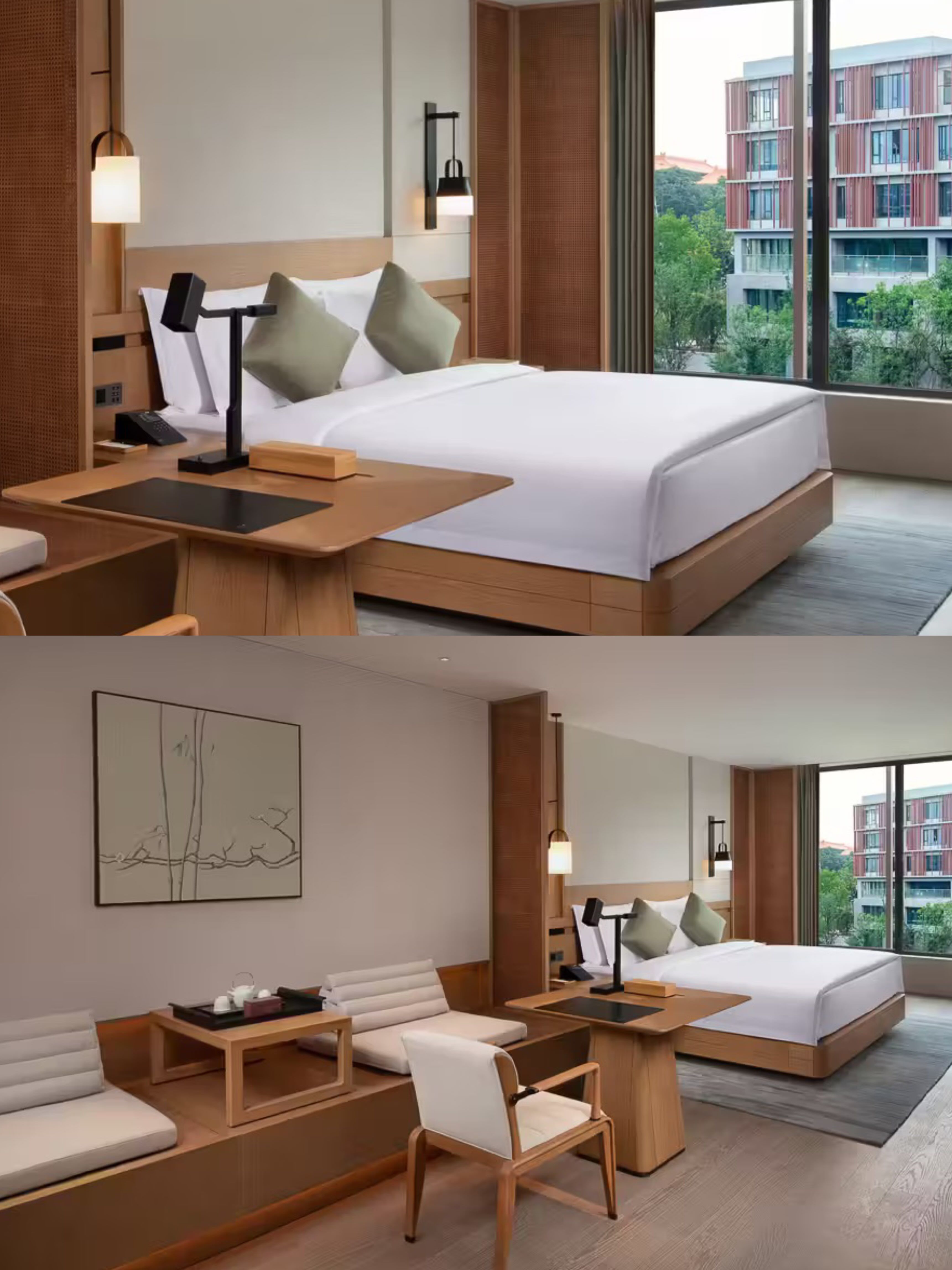 • 设施能打:户外庭院泡池(四季恒温),边泡汤边闻桂香;24小时瑜伽室,配落地绿植窗,晨起拉伸超解压
