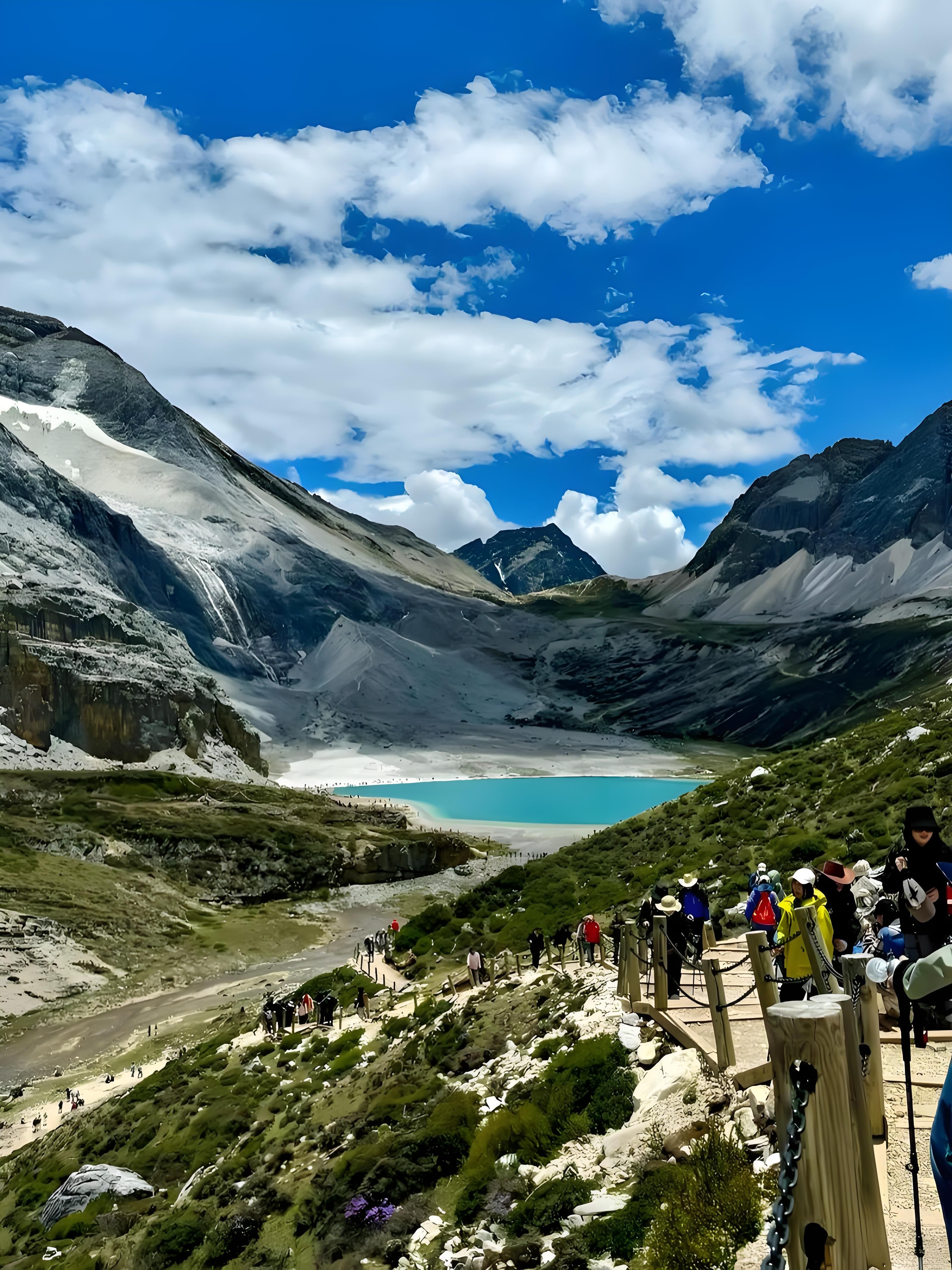 - 轻徒步路线:洛绒牛场牛奶海下部观景台(单程约3小时,海拔4600m,建议携带氧气瓶),俯瞰雪山湖泊倒影。