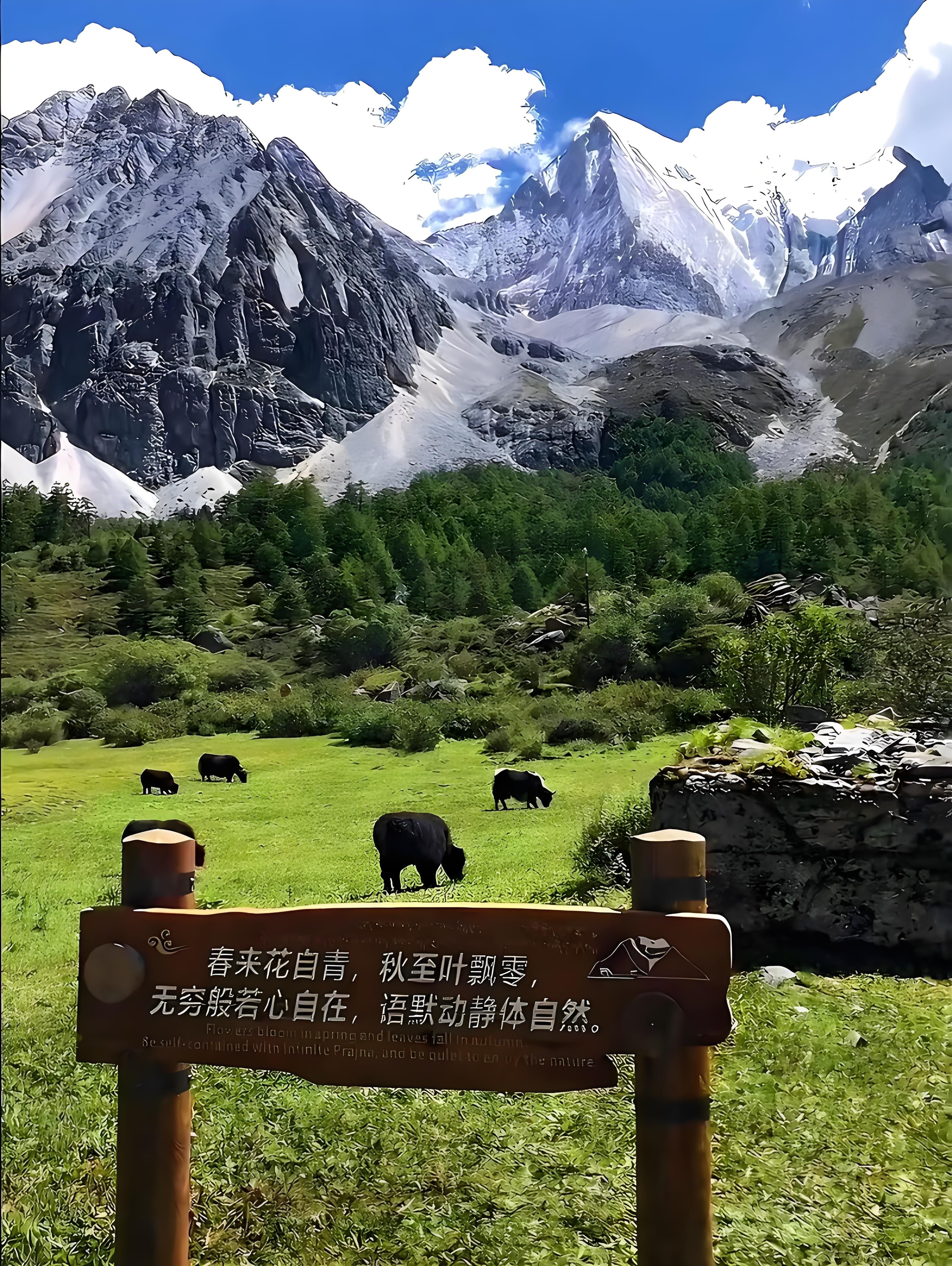 - 亚丁短线游:冲古寺珍珠海(徒步2小时,海拔3900m),赏仙乃日神山倒影。