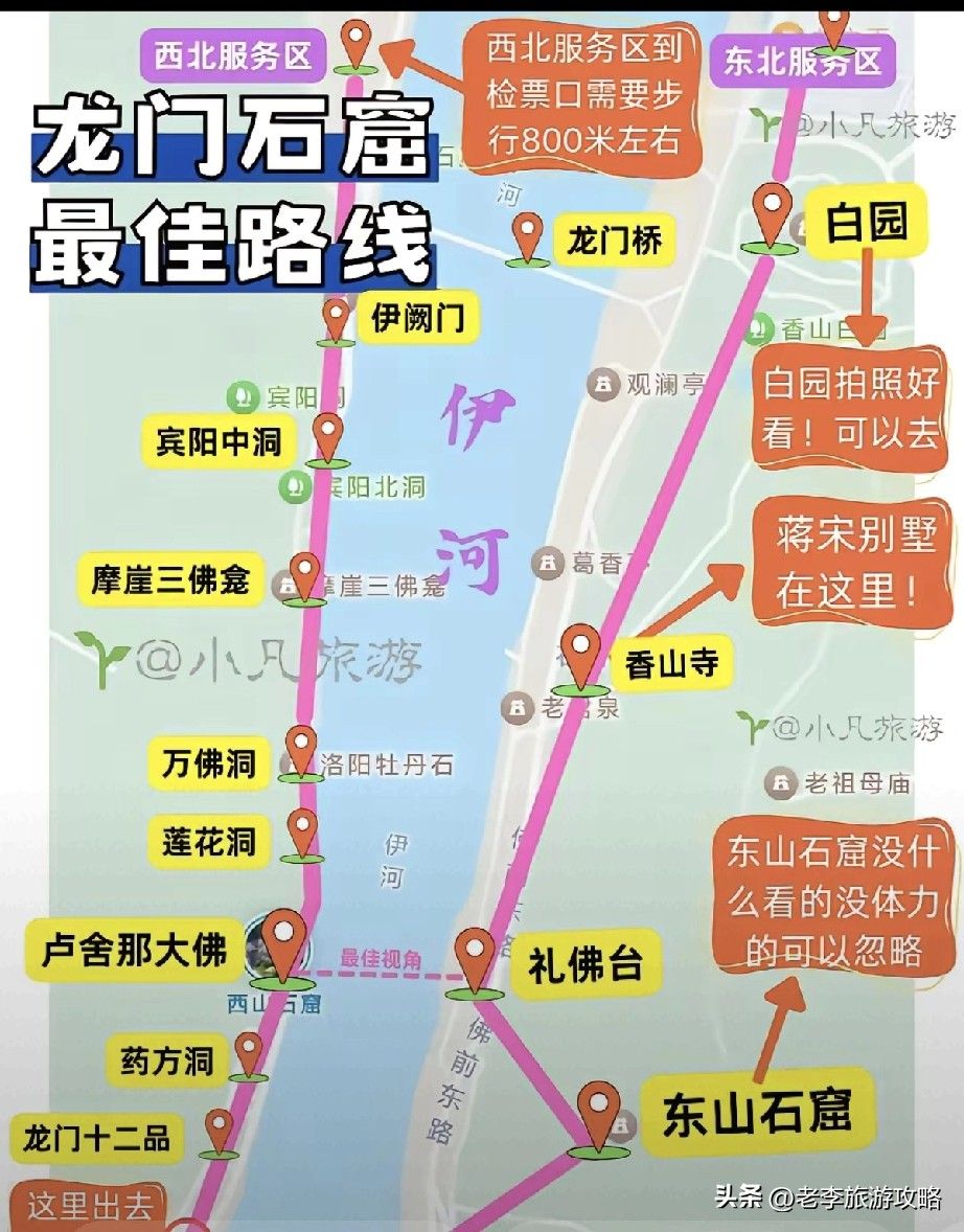 3. 游览顺序: 过桥后从西山石窟开始游览,这是石窟的精华所在。