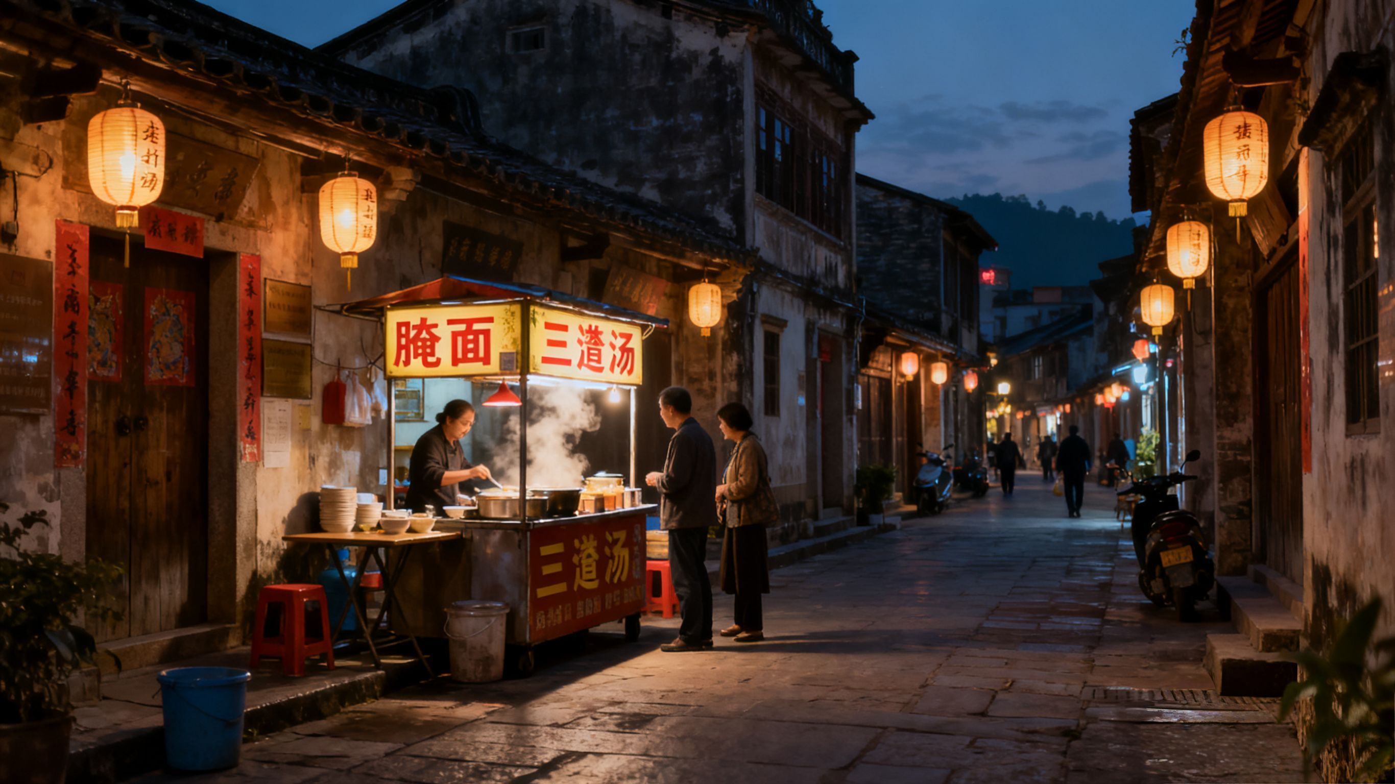当夜幕降临,一盏盏灯笼亮起,街头飘来腌面与三及第汤的香气。这最朴实的客家味道,是游子心中永远的乡愁,也是旅人舌尖上最地道的风土。