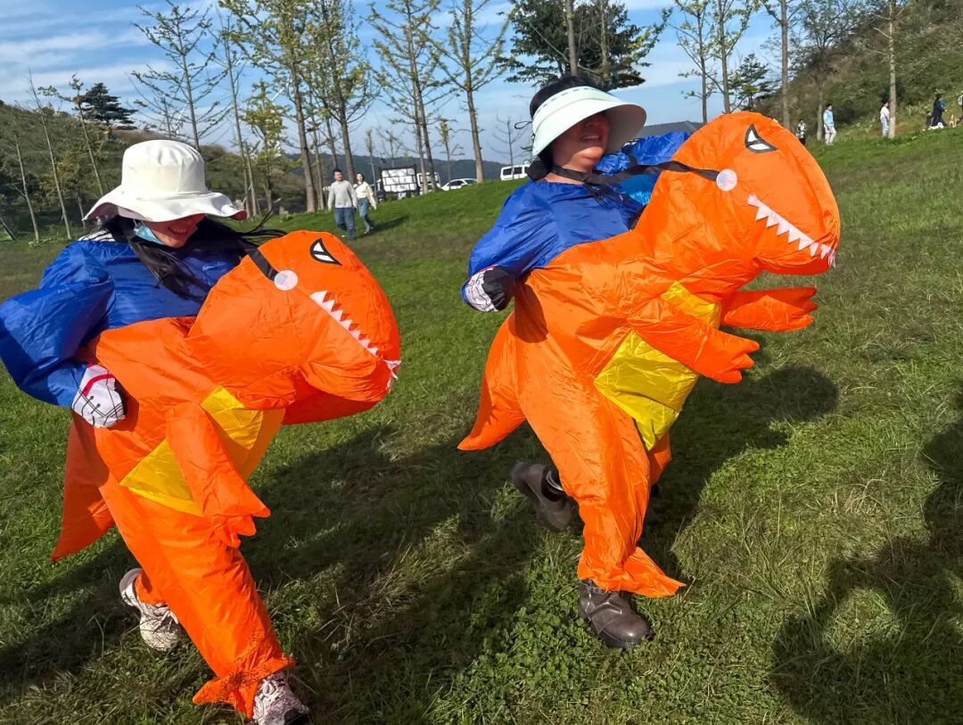 滚月饼大赛、恐龙向前冲、背背俯卧撑