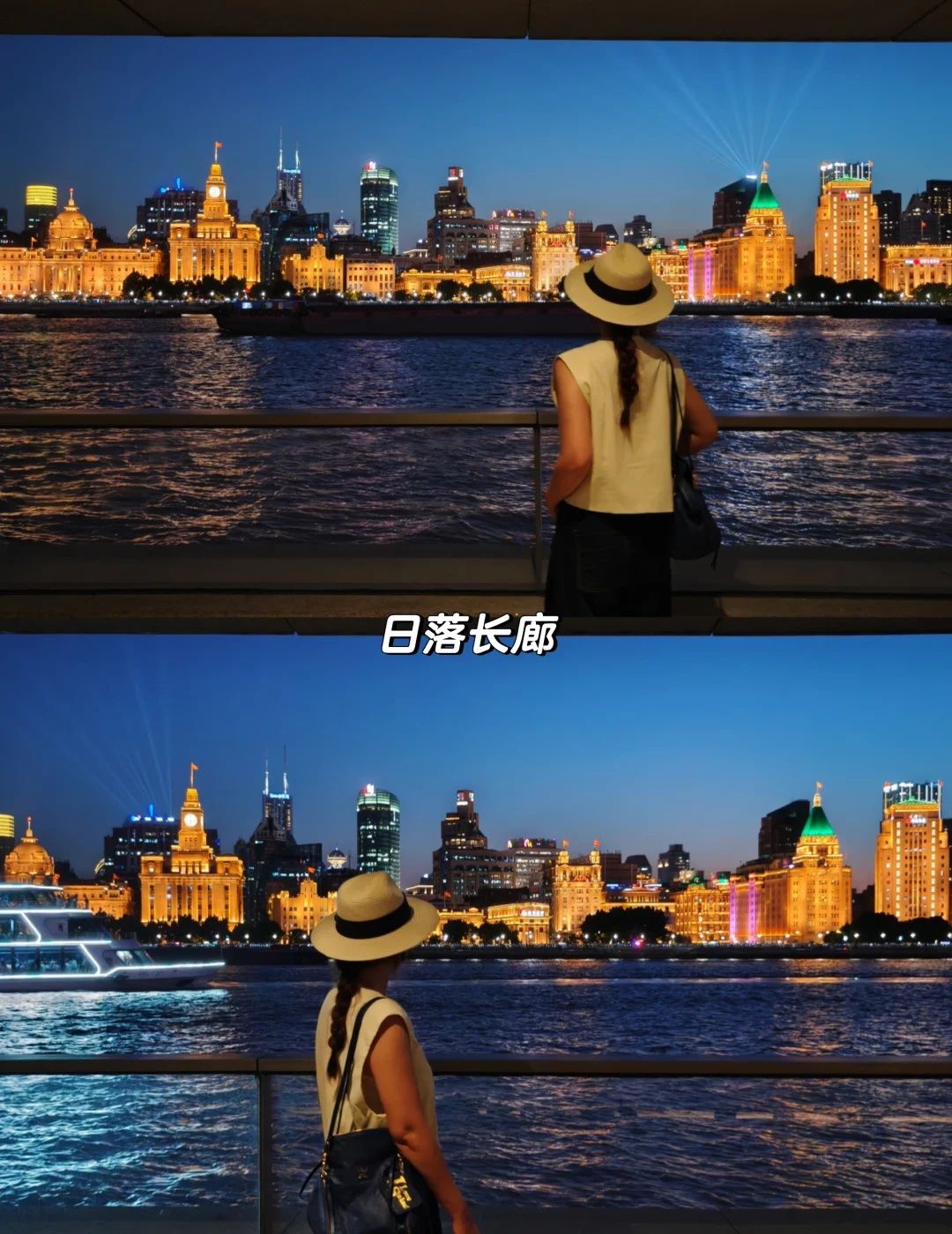 除了东方明珠电视塔,浦东美术馆旁边的日落长廊是观赏日落夜景的好地方