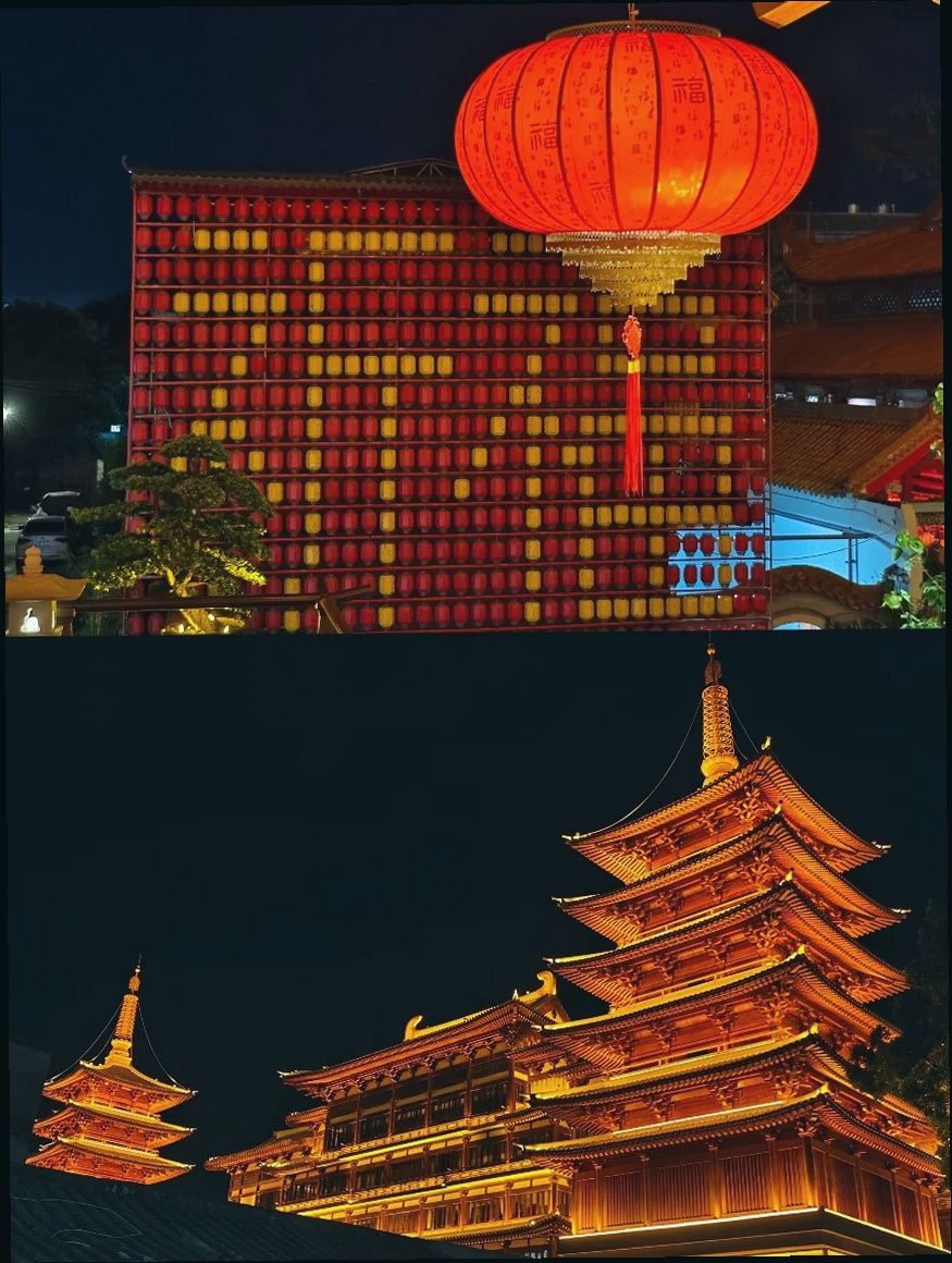 - 潮汕三大名寺之一,夜晚灯光点缀下的双峰寺,氛围感直接拉满!