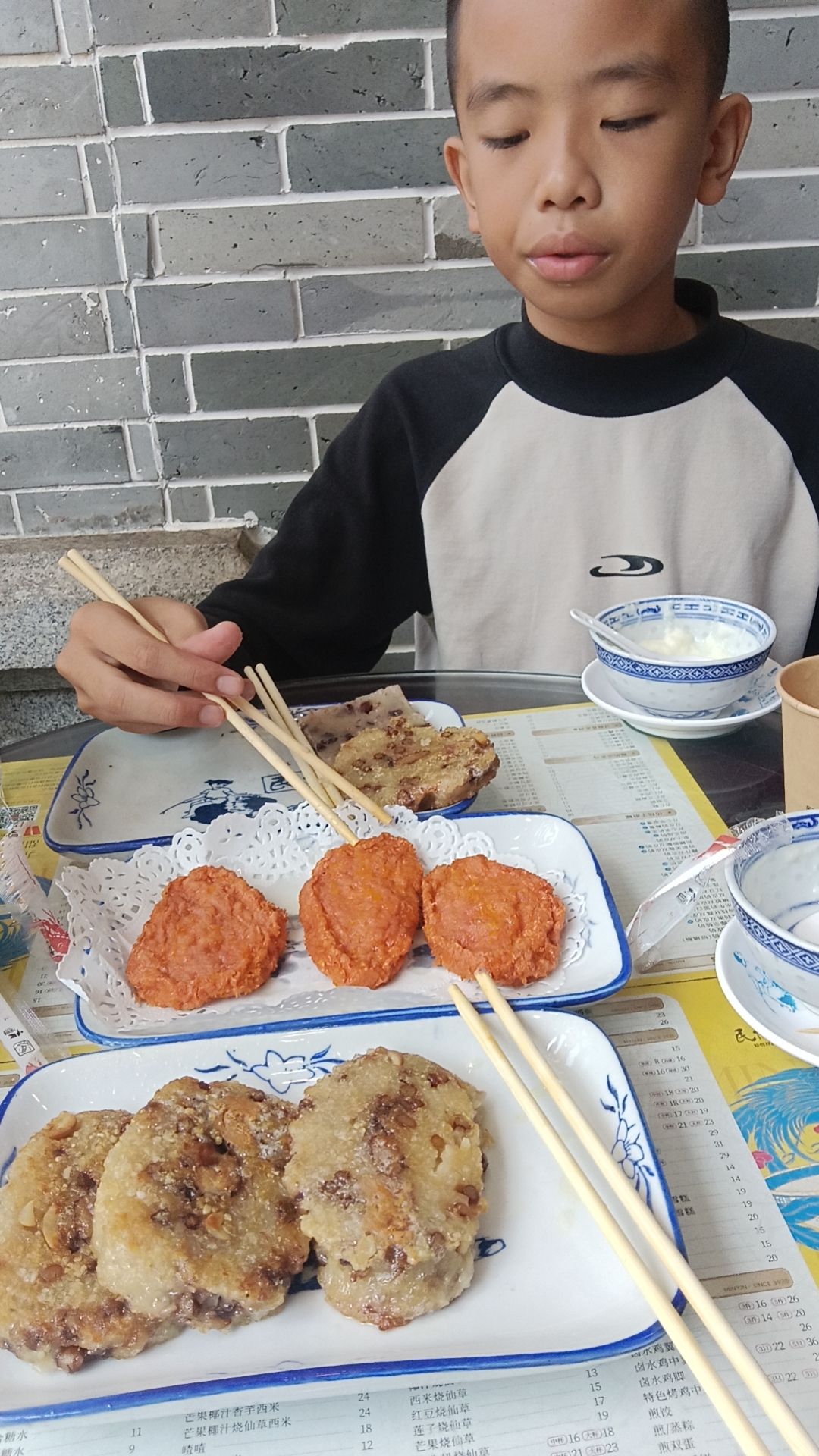 停留了1个半小时后走出清晖园,到附近的民信老辅找吃的。必点双皮奶,还点了红豆糕、鲜虾饼、鱼蛋、煎粽等。一共消费100多,人均30多。民信老辅创建于1925年,正好跨过一个世纪。店内人满为患,半小时又翻一次台,生意异常火爆。