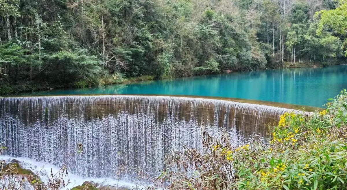 1. 小七孔景区:湖水清澈见底,瀑布如丝如练,仿佛走进了童话世界。