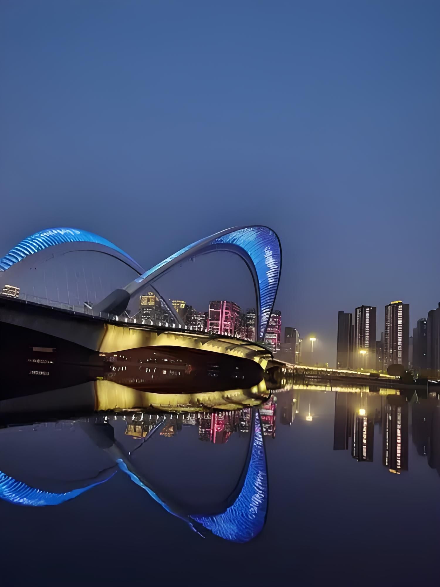 夜游天花板:每晚19:30两岸灯光秀亮起,现代大厦与唐代风格桥梁同框,赛博朋克混搭盛唐气象!