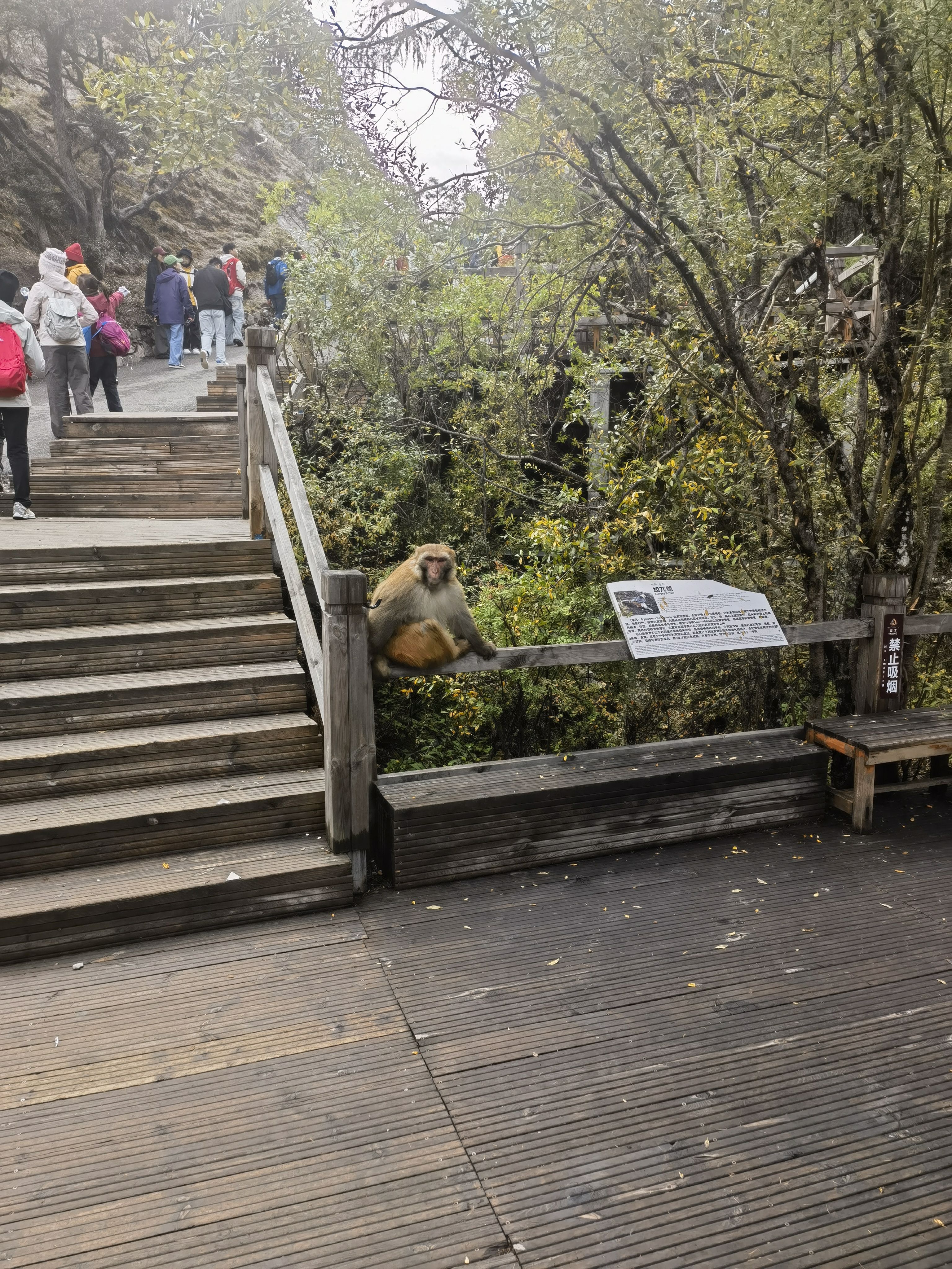 另一重深刻印象,是这里的灵秀。灵山静默,倒映于碧水之中;植被如柔软的地毯铺展其间。猕猴、岩羊、松鼠与各类山鸟自在出没——它们并不畏人,有的悠然啄食林间野果,有的坦然接受游人的馈赠。人与自然的默契在这里静静流淌,恰如童话般纯粹动人。