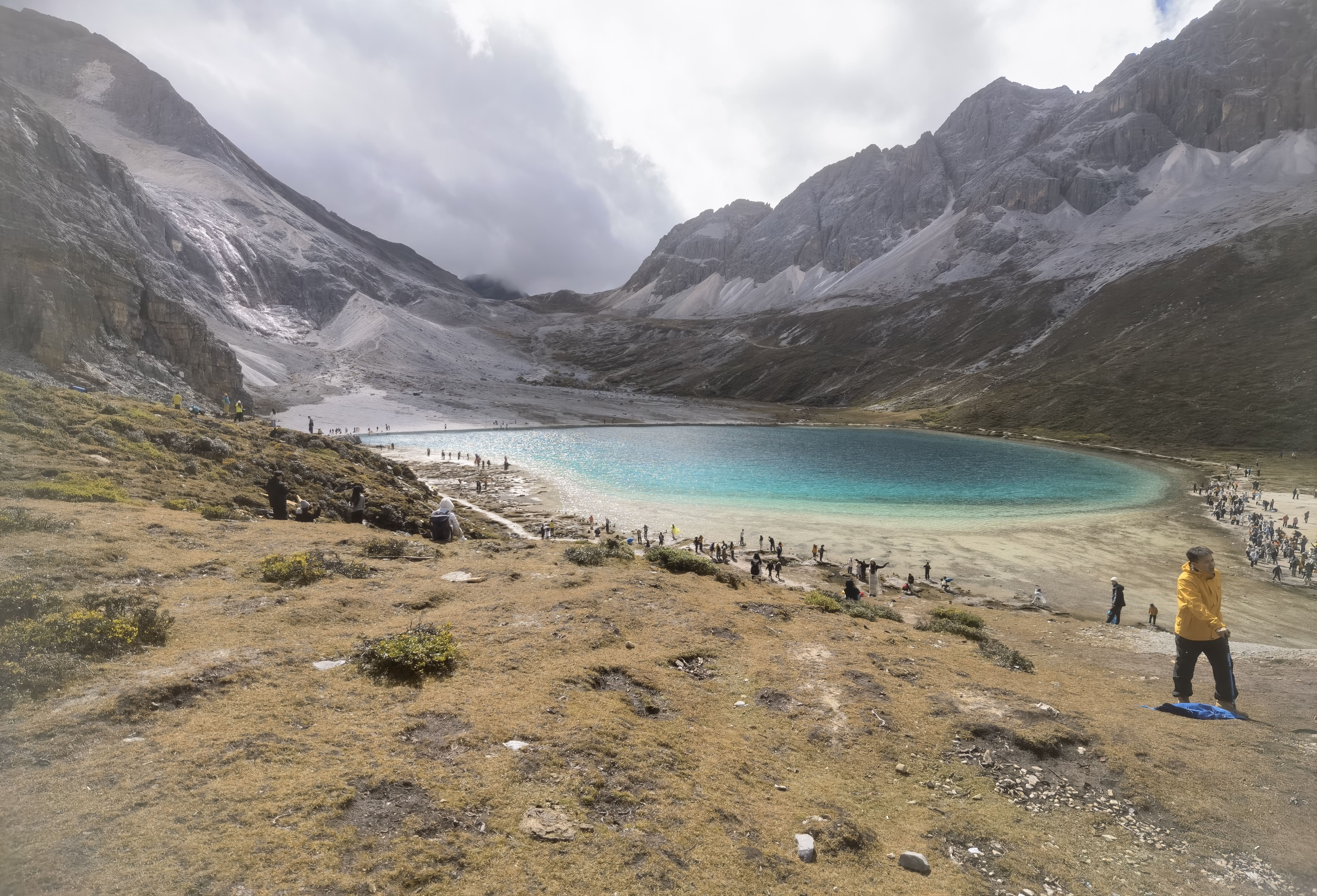 出发前,我们曾就路线选择进行了深入讨论。稻城亚丁景区辽阔,地处高原,主要有两条游览路线:线路二通往珍珠海,行程较短,海拔较低;而线路一则通往牛奶海与五色海,路程更长,海拔更高(达4800米),素有“金刚挑战线”之称——事实证明名不虚传,我们甚至目睹工作人员数次搀扶或背负体力不支的游客下山。起初,我们顾虑年龄与体力,打算选择较为轻松的第二条线。