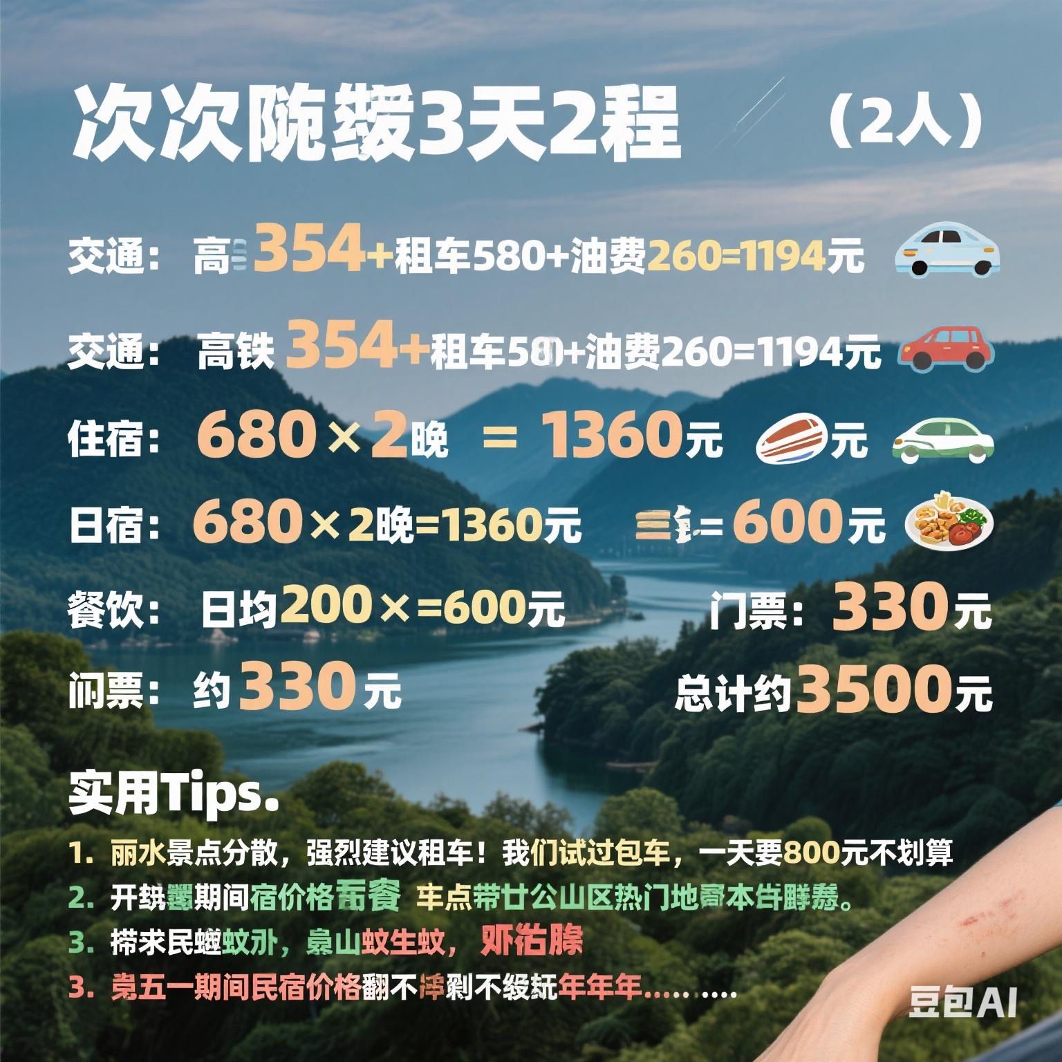 1. 丽水景点分散,强烈建议租车!我们试过包车,一天要800元不划算