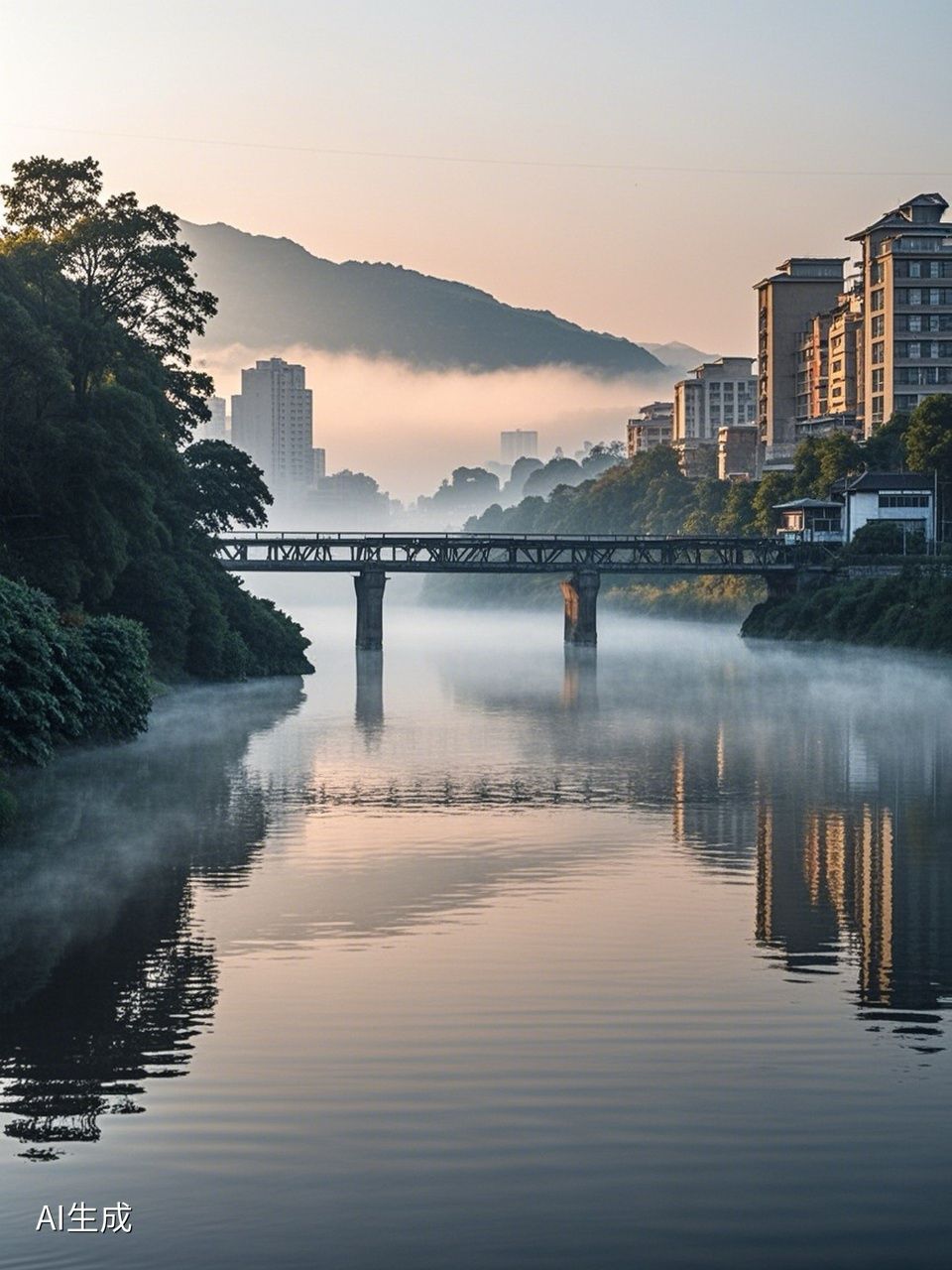分享城市新鲜事湖南浏阳河清晨的浏阳河畔,薄雾如轻纱般笼罩着水面,微风拂过
