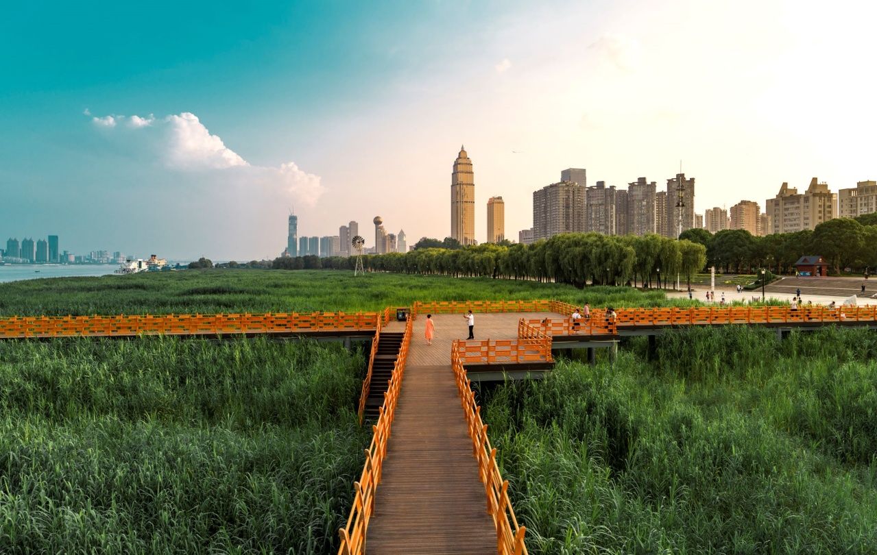 - 汉口江滩 :江滩上可以欣赏到宽阔的长江江面,以及对岸的城市天际线。黄浦门入口处的绿藤拱门与长江二桥构成独特画面,是热门的打卡机位。