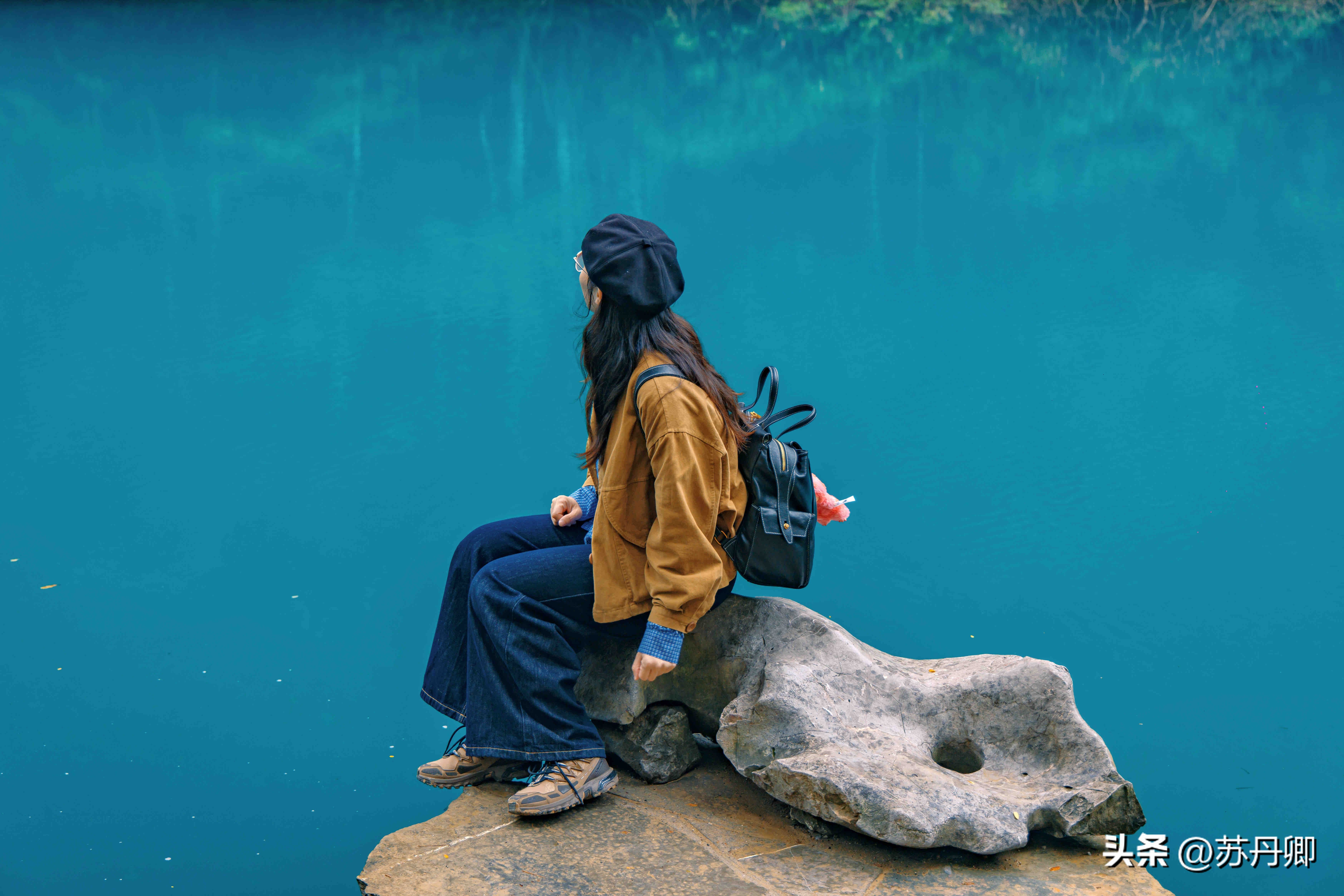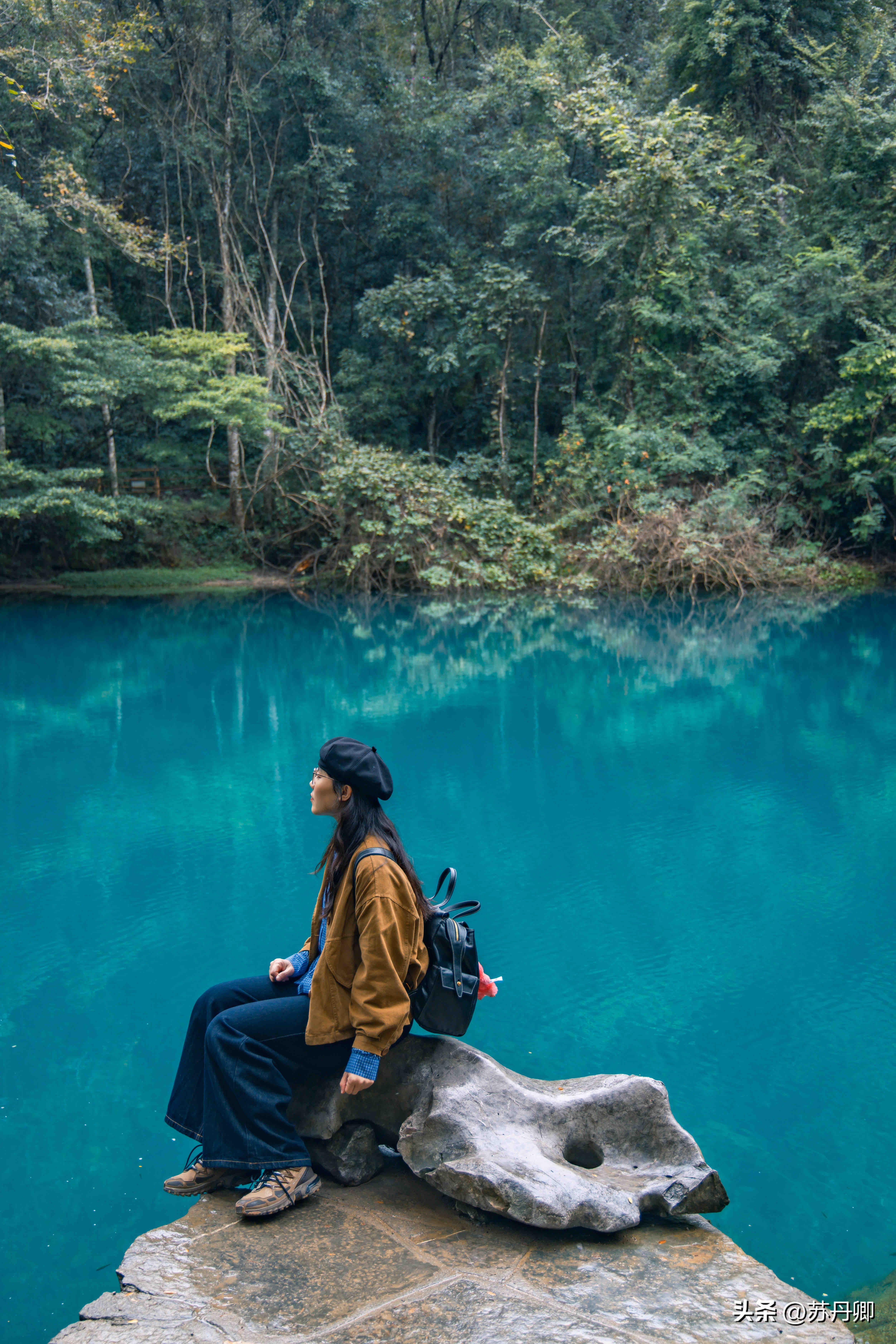 贵州的小七孔景区的气温并不冷,稍有丝丝凉意,但走动起来的体感非常舒适(穿搭见图,我在贵州旅行的穿衣指南主要以这一身搭配形式为主,除了梵净山)。
