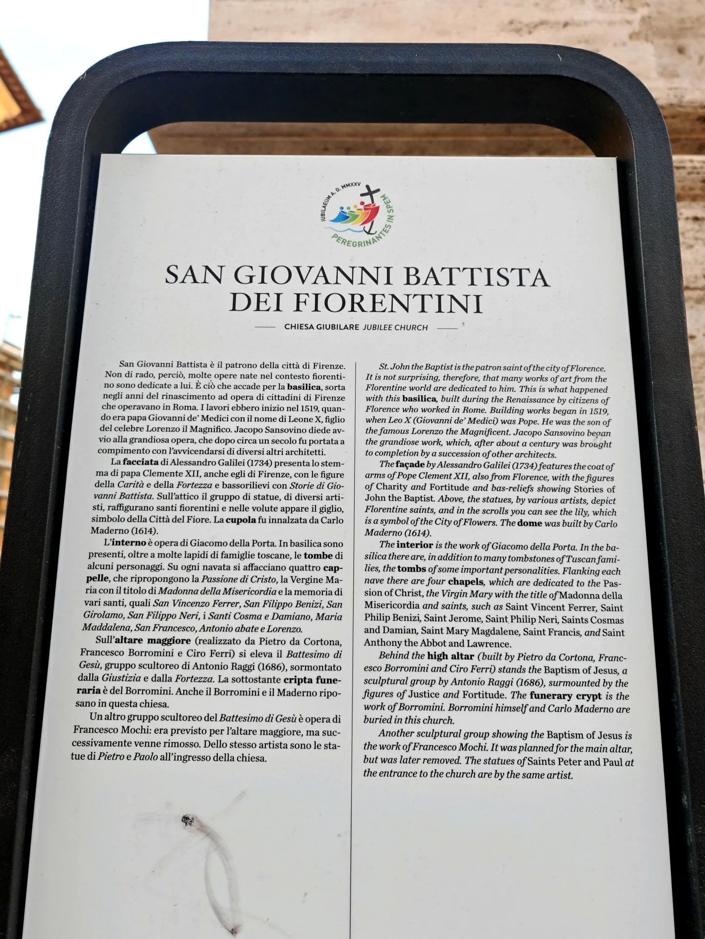 2025年4月意大利游回顾:巴洛克大师博罗米尼、马代尔诺的安息地——罗马的佛罗伦萨圣若望圣殿。23日是我这次在罗马停留的唯一一个整天,这次没有去万神殿、许愿池、西班牙广场等地标性景点,市中心的威尼斯广场已经不能去了(正在修地铁站)。我计划去从未踏足的跨台伯河地区游览。早餐后先乘坐出租车到台伯河畔朱利亚路上的佛罗伦萨圣若望大殿看看,再从这里步行到跨台伯河地区。佛罗伦萨圣若望大殿建于十六世纪初,是来自佛罗伦萨美第奇家族的教皇利奥十世指示建设的,服务对象是在罗马的佛罗伦萨人,两位巴洛克大师马代尔诺和博罗米尼都参与了建设,他们虽然都来自瑞士提契诺州(瑞士的意大利语区),但都安葬在这座教堂里。马代尔诺(1556~1629)因在1603年创造出世界上第一个巴洛克正立面(P11)而受到教皇的重用,担任圣彼得大教堂总设计师,它设计了圣彼得大教堂的正立面(P12)。博罗米尼(1599~1667)是马代尔诺的瑞士同乡和弟子,他的成就超过了他的老师马代尔诺,他设计的罗马四泉圣嘉禄堂(P13)是建筑史上最著名的巴洛克建筑,他还设计了罗马纳沃纳广场上的圣依搦斯蒙难堂(P14),它是中国旅游团员最熟悉的巴洛克建筑。博罗米尼与另一位巴洛克大师贝尓尼尼之间的关系是瑜亮关系,但贝尓尼尼笑到了最后,博罗米尼自杀了。博罗米尼本想葬在自己的得意之作圣嘉禄堂里,但因为是自杀被教堂拒绝,佛罗伦萨人比较宽容,接纳了他,把他安葬在他的老师马代尔诺旁。佛罗伦萨圣若望大殿游客不多,但我去的时候有一个欧洲旅游团参观。我这次12天的行程中进了近三十个教堂,反正是免费的。#意大利旅行景点# #罗马古教堂# #罗马# #博罗米尼# #马代尔诺# #巴洛克# #自由行#