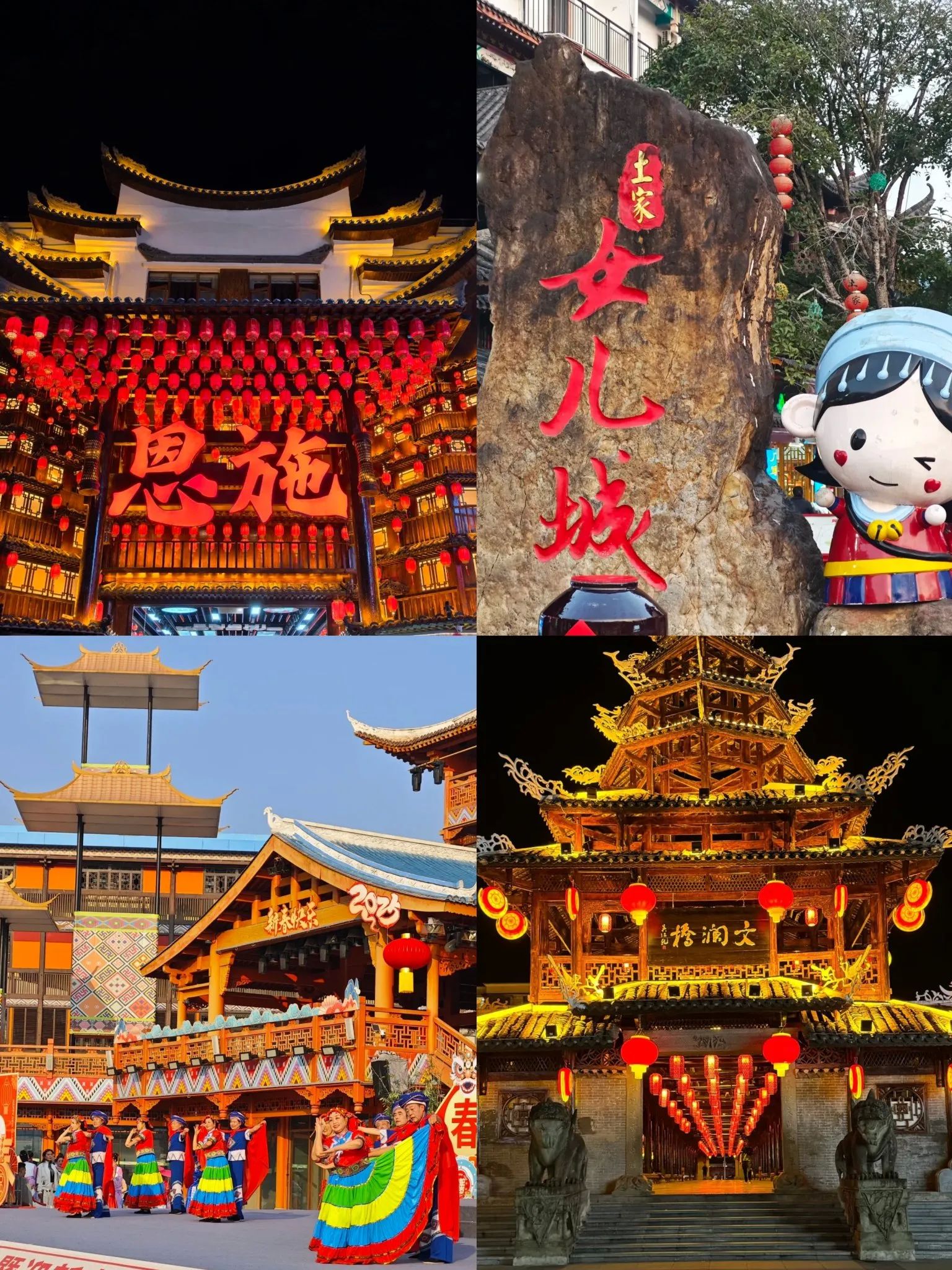 17:00后免费入场!穿一套20-30元的民族装,秒变“土家小公主”~必看土家摆手舞表演,找王婆对歌超有趣!夜市烤糍粑、合渣菜一定要尝,边吃边逛灯笼街,氛围感拉满~