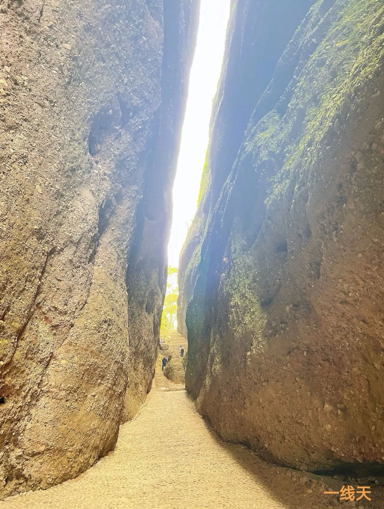 1、一线天,两侧崖壁陡峭,仅容一丝光线穿透,行走其中,犹如穿梭于狭长的隧道。