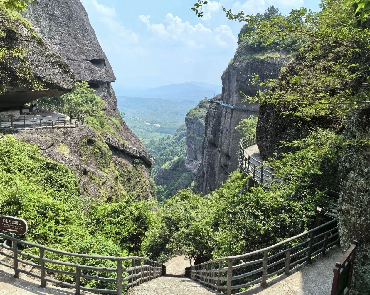 游览路线:岭南第一门-验票口-思乡亭﹣一线天-飞天魔毯﹣吊谷上棚﹣玻璃栈道﹣船头石﹣(原路返回)-天门﹣凌空栈道﹣袭盂石﹣姊妹石﹣霍山亭﹣登高岗﹣酒瓮石﹣灵山寺﹣思乡亭﹣岭南第一门。